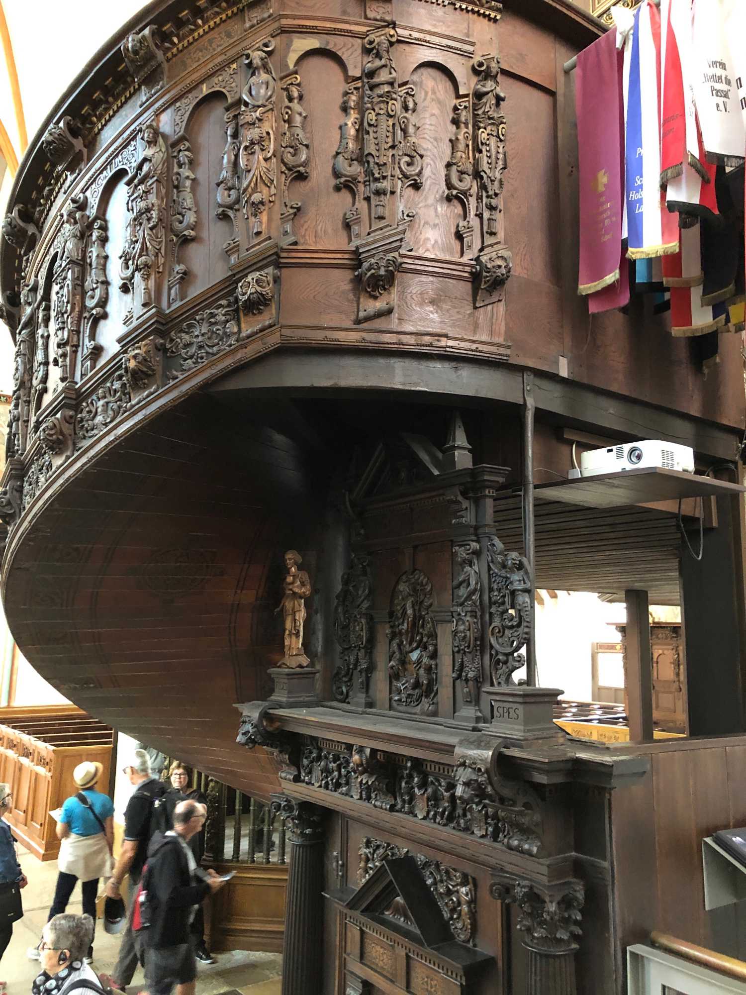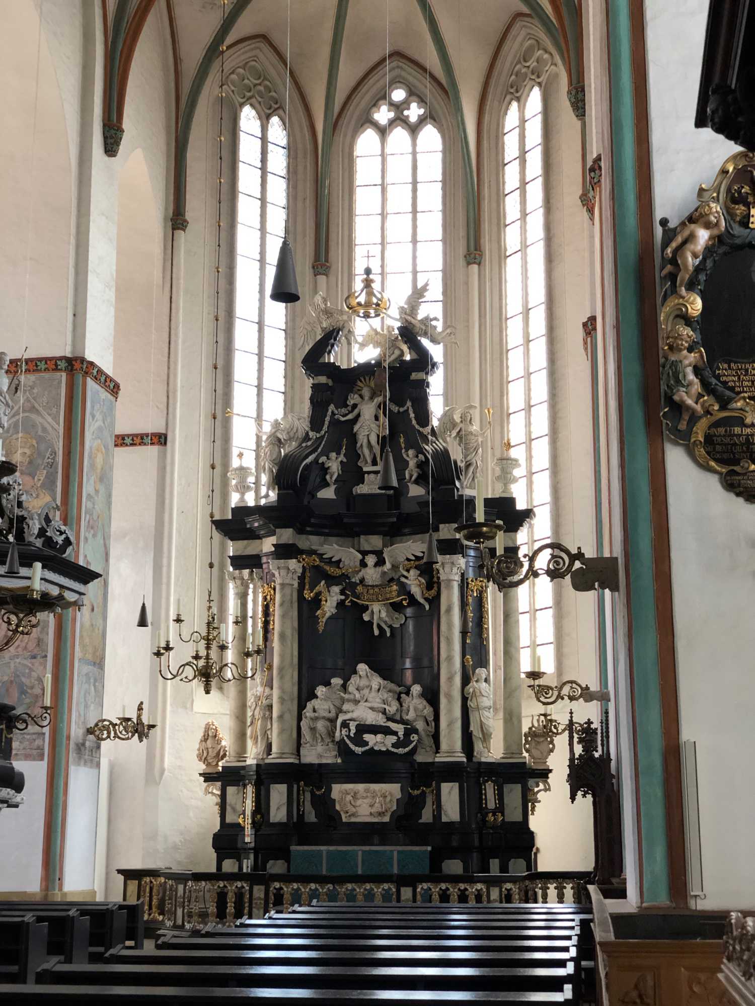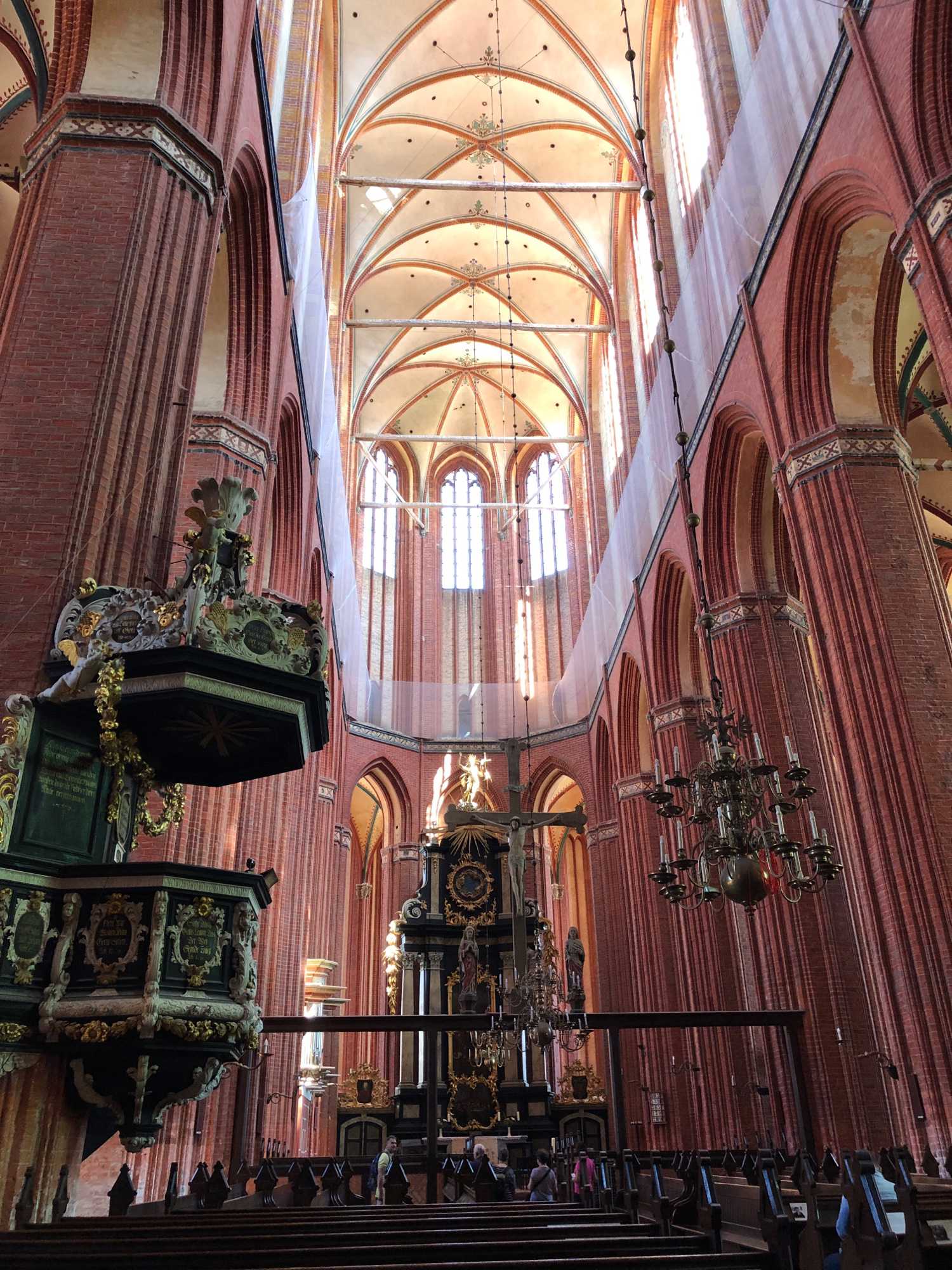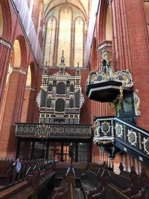 La ville hanséatique de Lübeck est également connu comme la « Ville des Sept Clochers » ou la « Porte du Nord ». Nous admirons son caractère médiéval, l'architecture inégalée et la structure cohérente de la vieille ville. Pas surprenant qu’elle ait obtenu sa nomination, en tant que premier site du patrimoine mondial de l'UNESCO en Allemagne, en 1987. Nous visitons la basilique Saint-Jacques (Jakobikirche) située au bord de la place Koberg dont la construction a débuté en 1381. En 1703, son immense clocher est tombé pendant un violent orage et a causé plusieurs dommages au toit et à l’intérieur. L’imposant édifice a été réparé mais aucun clocher n’a été remis en place jusqu’à aujourd’hui.