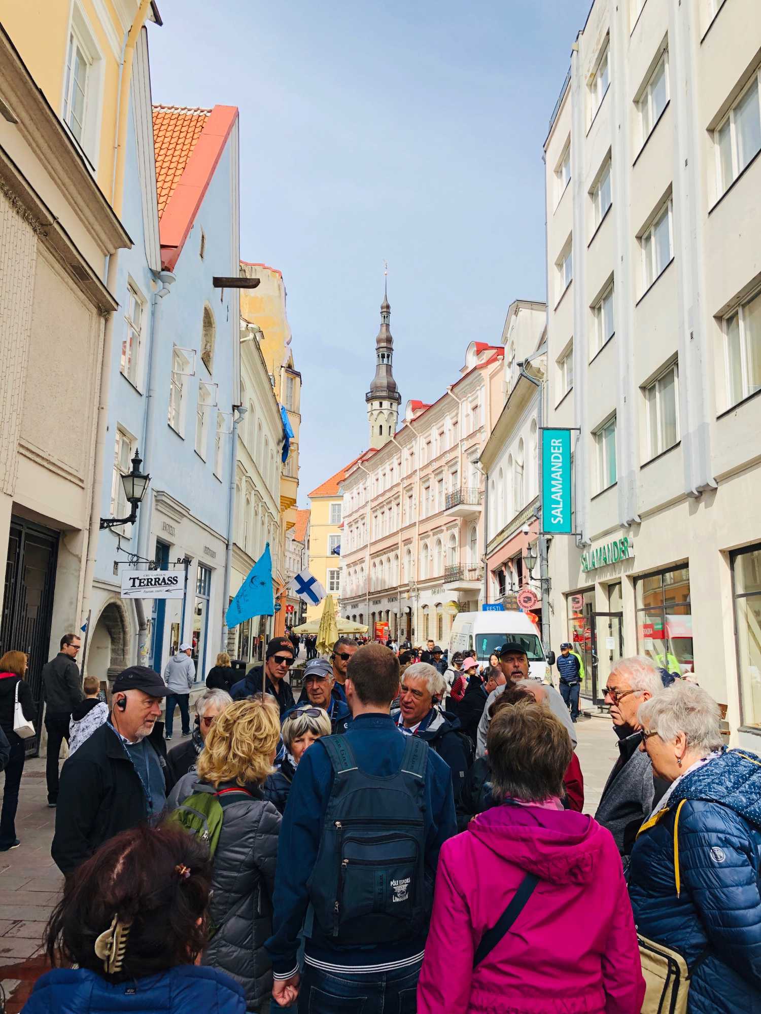 Notre guide, Amaury, nous amène pour une magnifique plongée au Moyen-Âge. La vieille ville de Tallinn se dresse devant nous, ses murailles sont intactes, toujours dotées de ses légendaires tours protégeant les rues pavées. Notre premier arrêt est à l’extérieur du Château de Toompea pour y admirer ses fortifications et sa grande tour. C’est aujourd’hui le siège du pouvoir. Au coin sud-ouest du complexe se trouve la tour Pikk Hermann; elle est le symbole de la nation estonienne. Construite en 1371, cette tour a actuellement une hauteur de 46 mètres. Chaque coin de rue de la cité médiévale de Tallinn laisse découvrir de superbes bâtiments de styles médiévales et gothiques.