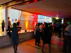 Ensuite, nous allons à la disco silencieuse pour nous aider à faire descendre le souper! Il s’agit d’une discothèque où les participants écoutent leur musique préférée avec des écouteurs sans fil. De plus, il y a un choix de trois rythmes différents. Pour les gens qui vont seulement voir la disco, ils trouvent ça très drôle de voir danser le monde sans entendre la musique.