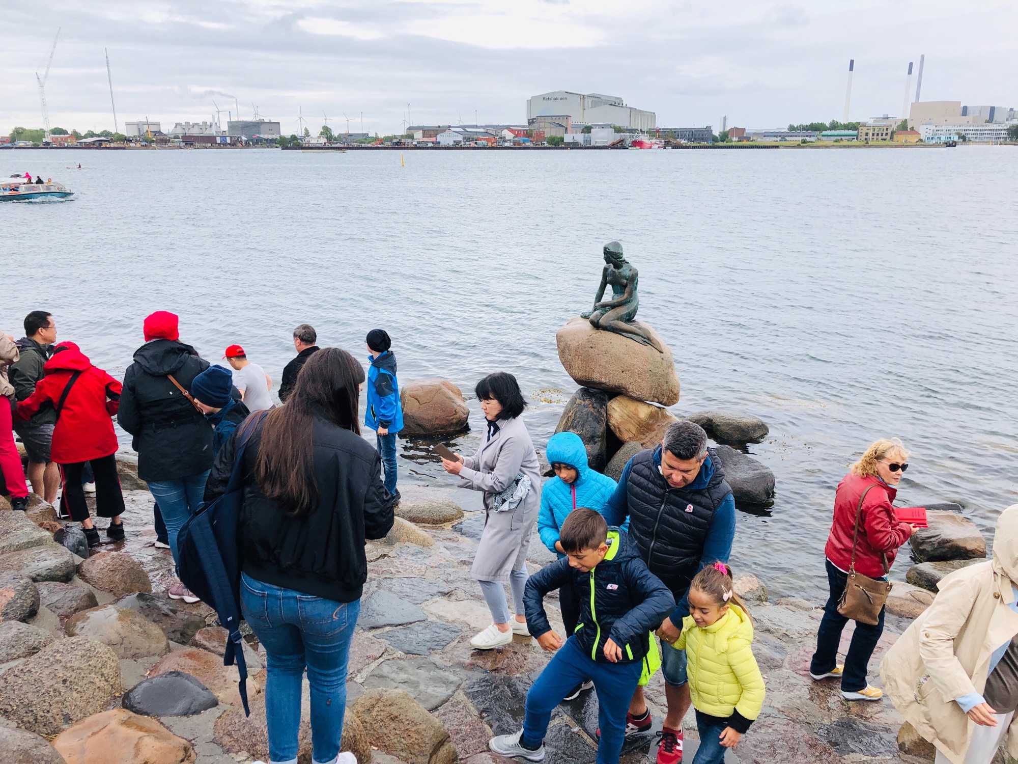 En commençant la journée, nous allons découvrir la Petite Sirène, sur le quai de Langelinje. C’est l'une des plus célèbres attractions touristiques du Danemark et la fille la plus photographiée du pays. Depuis 1913, elle accueille les voyageurs au port de Copenhague. La statue en bronze renvoie au personnage du célèbre conte de fées, écrit en 1887, par l'écrivain danois Hans Christian Andersen: l'histoire de la sirène malheureuse qui rêve de pouvoir marcher sur la terre ferme pour rejoindre son amoureux, en sacrifiant ainsi sa vie dans la mer. Pour sa réalisation, le sculpteur Edvard Eriksen s'est inspiré, pour la tête, de la danseuse Ellen Price, qui en 1909 a été danseuse étoile au Royal Theatre de Copenhague dans le ballet "La Petite Sirène". Pour la petite histoire, c'est la femme du sculpteur, Eline Eriksen qui servit de modèle pour le corps. La statue originale a ensuite été donnée à la ville de Copenhague par le fabricant de bière et fondateur de l'entreprise Carlsberg, Carl Jacobsen. Il avait engagé Edvard Eriksen après avoir été séduit par la grâce de la danseuse Ellen Price. Malheureusement, la statue a plusieurs fois été victime d'actes de vandalisme: peinturé, souvent décapitée et privée de ses bras. Après chaque travail de restauration, elle retourne à sa place sur le rocher pour vous souhaiter la bienvenue au port de Copenhague. Notre guide nous dit que l’original est maintenant conservé dans un lieu sûr et celle que nous avons vu est, dans les faits, une copie.