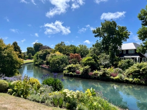 Nous voici donc arrivés à Christchurch où notre guide Claudie et notre chauffeur Bill, nous accueillent pour une journée de visite avant de nous emmener à notre hôtel. Côté température, nous sommes vraiment choyés, il fait 24 degrés C environ avec du soleil et un bon vent, c’est très agréable. Nous avons un petit lunch dans une charmante maison de thé située au cœur d’un magnifique jardin sur le bord de la rivière Avon. Nous sommes accueillis pour le « High Tea » au grand bonheur des voyageurs qui sont enchantés. Nous choisissons nos thés et nous sommes charmés par les petites bouchées servis pour l’accompagner. Les délicieux scones typiques étaient délicieux, tout comme les petites sucreries et sandwichs. Les photos vous présenteront le bel assortiment servi. Nous avons par la suite marché dans les jardins et le long de la rivière avant de rejoindre notre autobus.