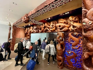 Notre arrivée à Auckland était tôt en matinée. Nous avons passé la douane qui est plutôt un contrôle pour les produits agricole mais qui a pris tout de même beaucoup de temps. On récupère nos valises et on se dirige vers la sortie. Les valises doivent être transportées au terminal pour les vols domestiques car nous étions au terminal international à notre arrivée. Notre vol de correspondance vers Christchurch décolle à 11 heures et nous arrivons à destination à 12h25.