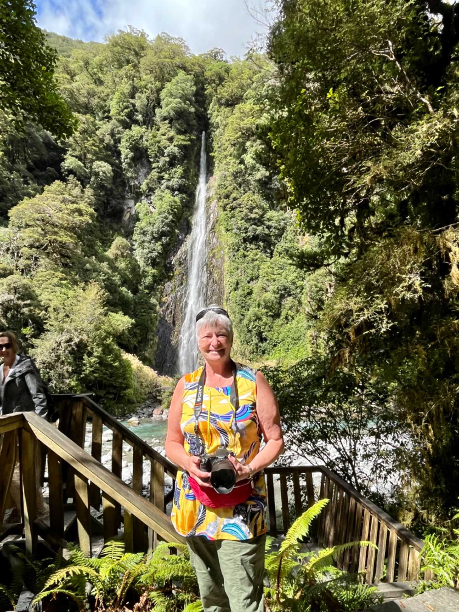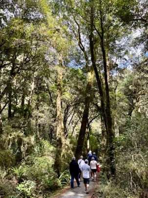 Nous avions prévu partir tôt afin de pouvoir prendre notre temps sur la route. C’est notre journée avec la plus grande distance à parcourir, donc il valait mieux partir plus tôt pour arriver moins tard dans la ville de Queenstown. En fait, la côte Ouest de l’île Sud, que nous quittons ce matin, se révèle être l’une des plus pluvieuses du pays. Alors qu’il tombe en moyenne 680 mm de pluie par an à Wanaka, la moyenne passe à 8 300 mm annuels du côté d’Haast, sur la côte. Plus de douze fois plus, ce n’est pas n’importe quoi! Les paysages sont très beaux. Nous apprécions cette belle route de montagne. Les fougères géantes sont particulièrement spectaculaires et le vert de ces belles fougères illumine le décor. On passe donc des forêts de hêtres australs à des forêts humides, presque tropicales puis, de l’autre côté du col, à une végétation basse et plutôt sèche dans la région d’Otago centrale.