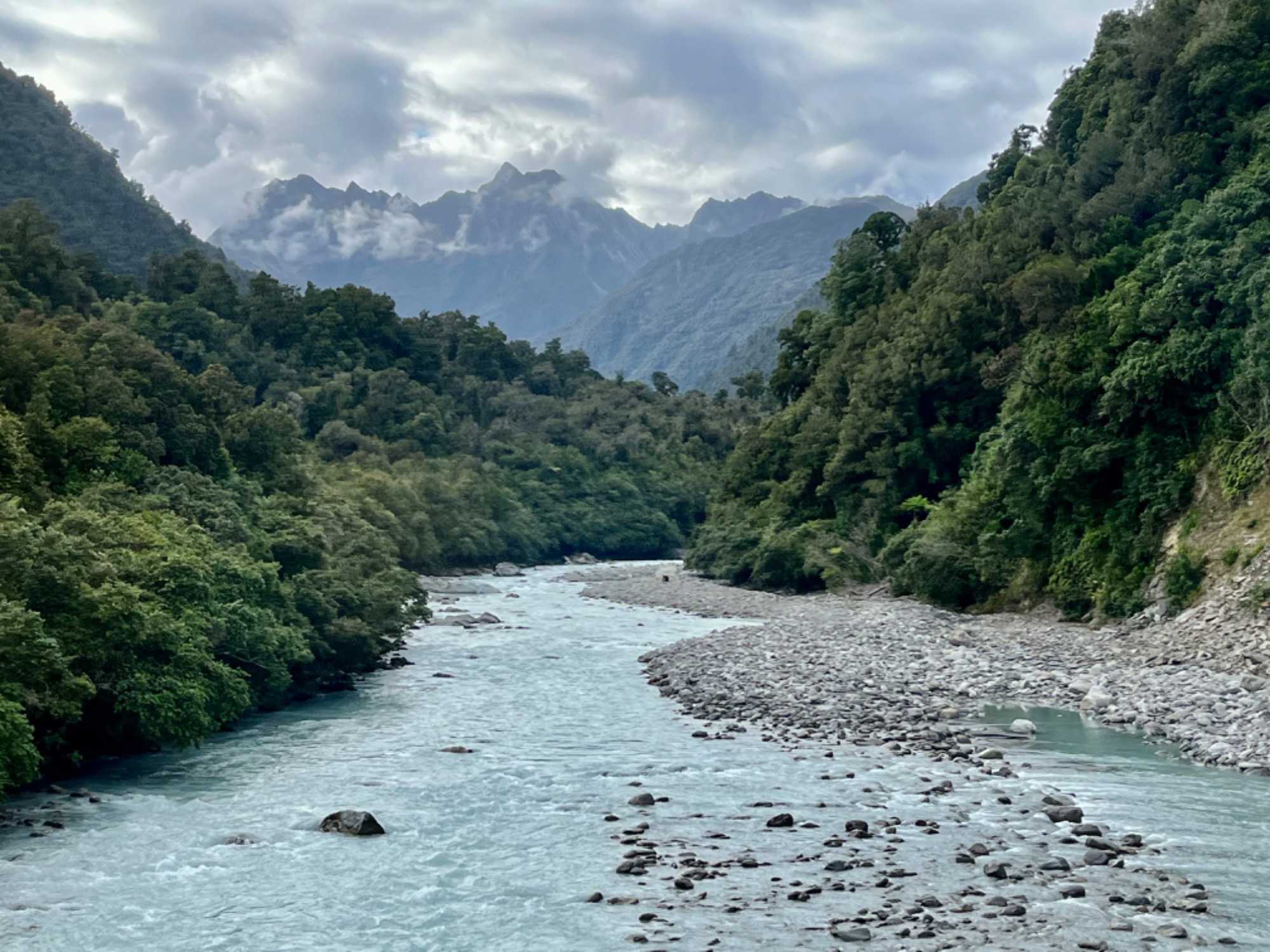 Ce matin, accompagné d’un beau soleil, nous quittons en direction de la magnifique région alpine de Queenstown en passant par le spectaculaire « Col de Haast ». Le col marque la frontière entre les régions de Westland et d'Otago. La construction de la route s'est terminée en 1966, mais elle n'est totalement asphaltée que depuis 1995.