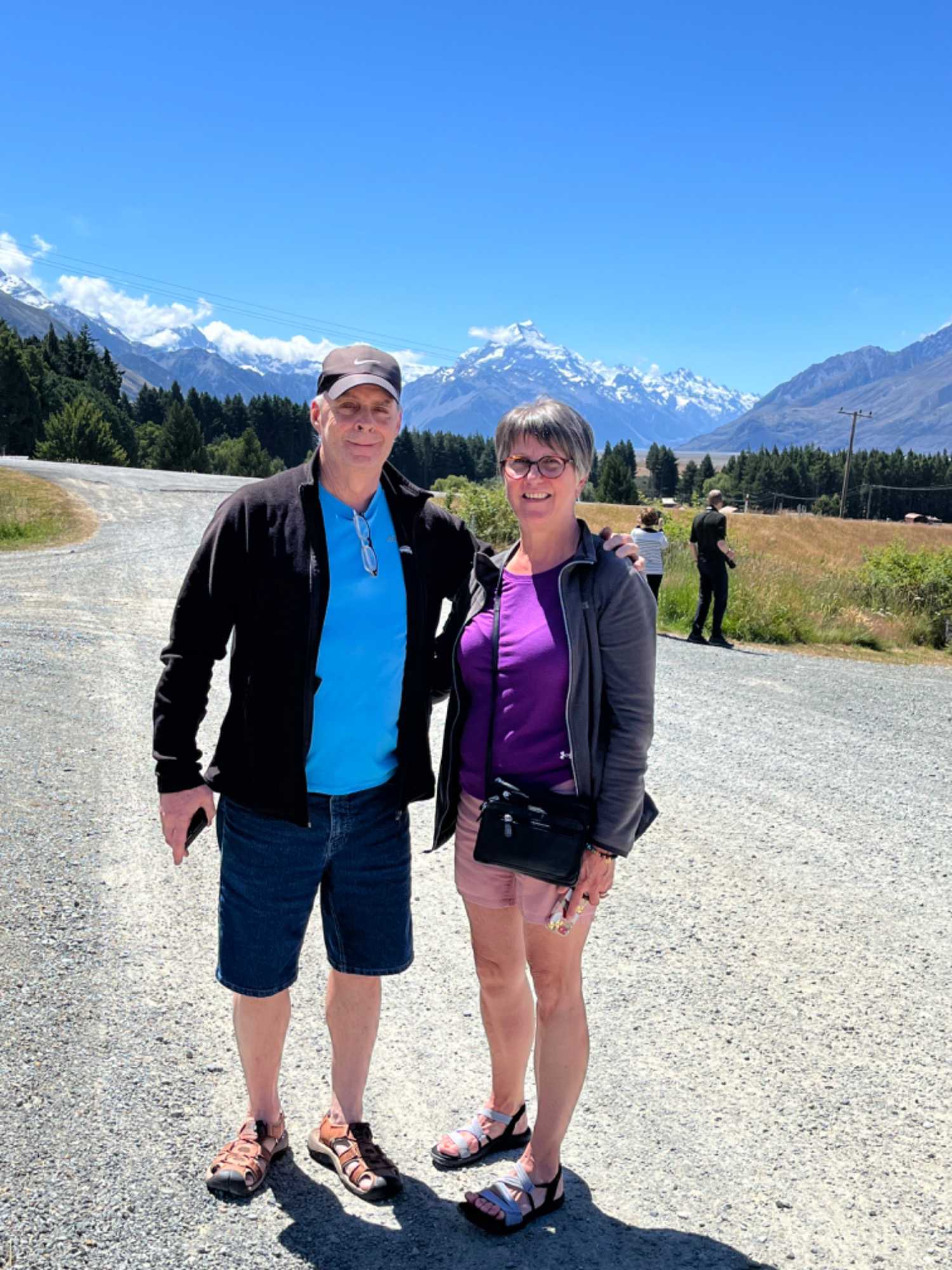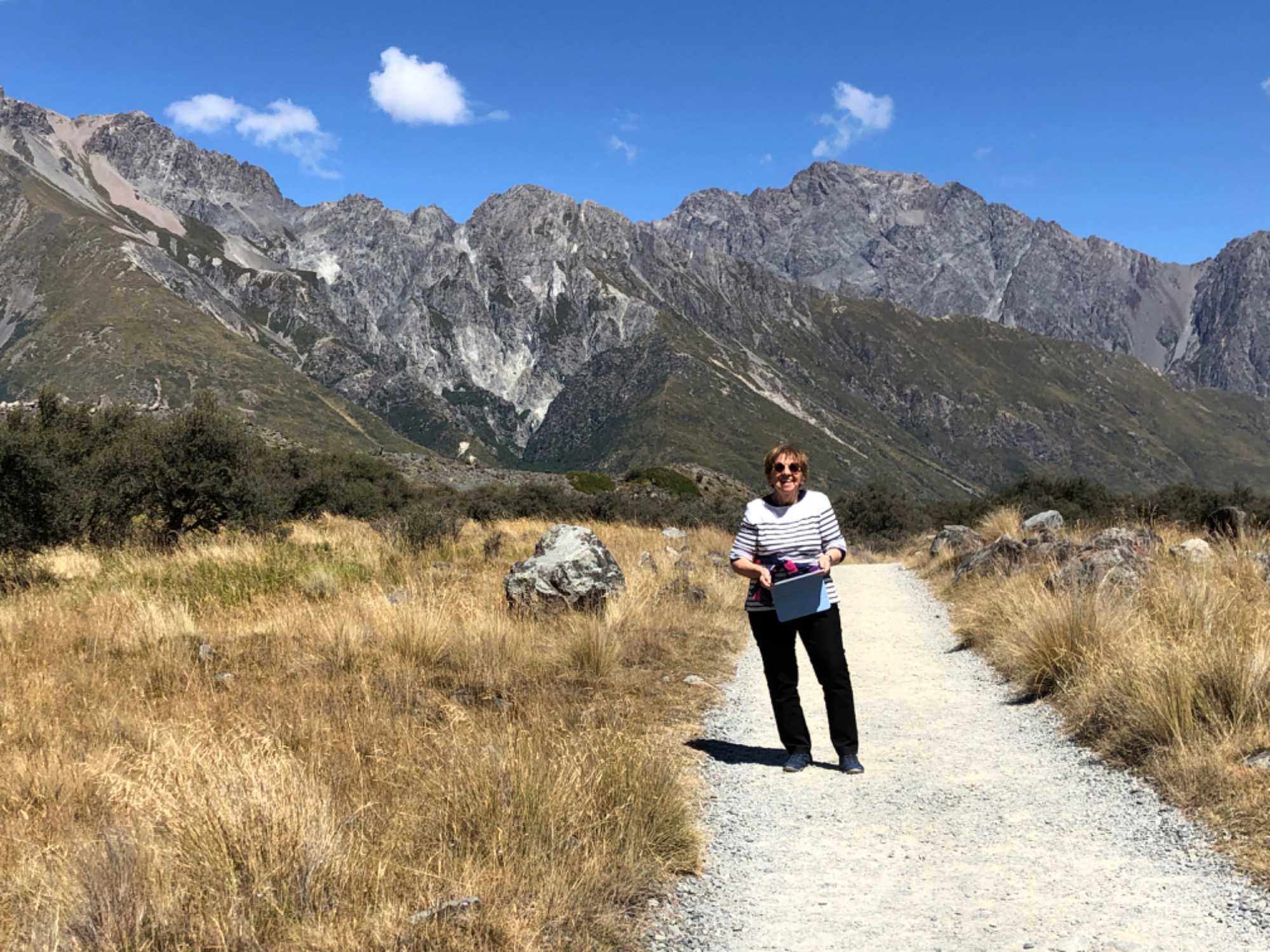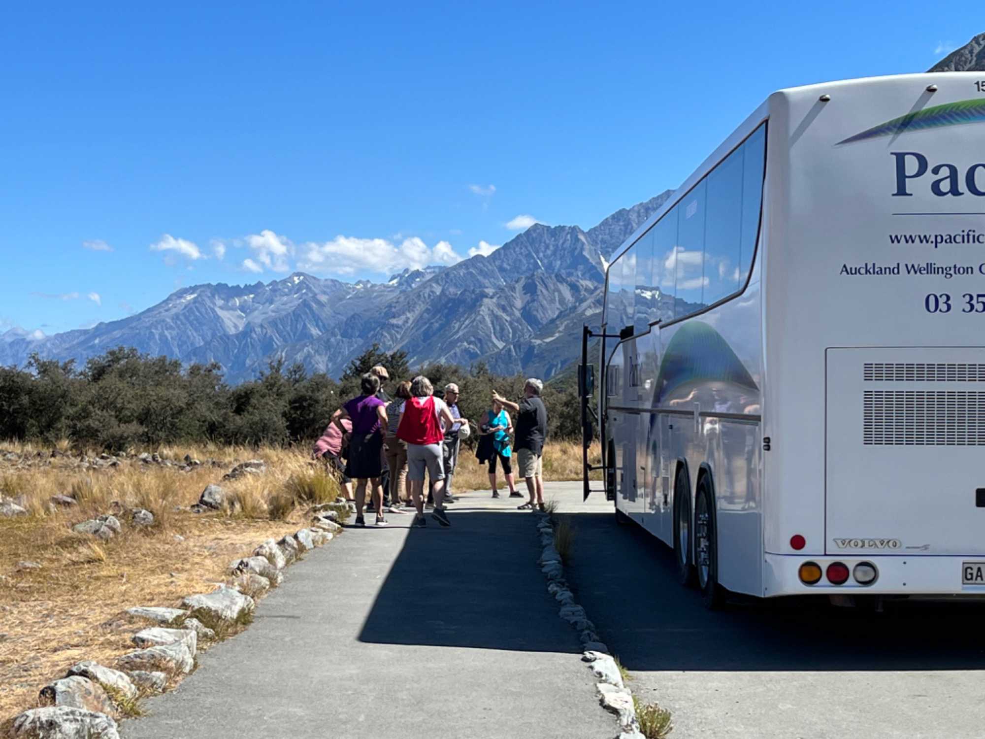 Notre route nous fait traverser la région viticole et fruitière du centre de l’Otago. Les vignobles de la région de Gibbston sont magnifiques. Nous arrêtons à Kawarau River pour voir le saut à l’élastique (bungy) à partir d’un vieux pont. Ensuite, nous faisons un arrêt dans le coeur restauré de la vieille ville de Cromwell. On y apprend qu’en 1953, le parc national Aōraki/Cook de Nouvelle-Zélande a rejoint le patrimoine mondial de l’UNESCO. Ce monde de roche et de glace possède 158 sommets couverts de neiges éternelles. La légende veut qu’au fil du temps, un canoë se changea en pierre pour devenir l'île du Sud de la Nouvelle-Zélande. Les passagers formèrent la chaîne des Alpes, et Aōraki le frère aîné devint le sommet le plus élevé du pays. En réalité, les Alpes du Sud sont nées du choc entre les plaques tectoniques australienne et pacifique. De nos jours, toute la chaîne continue de s'élever et gagne quelques centimètres à chaque année.