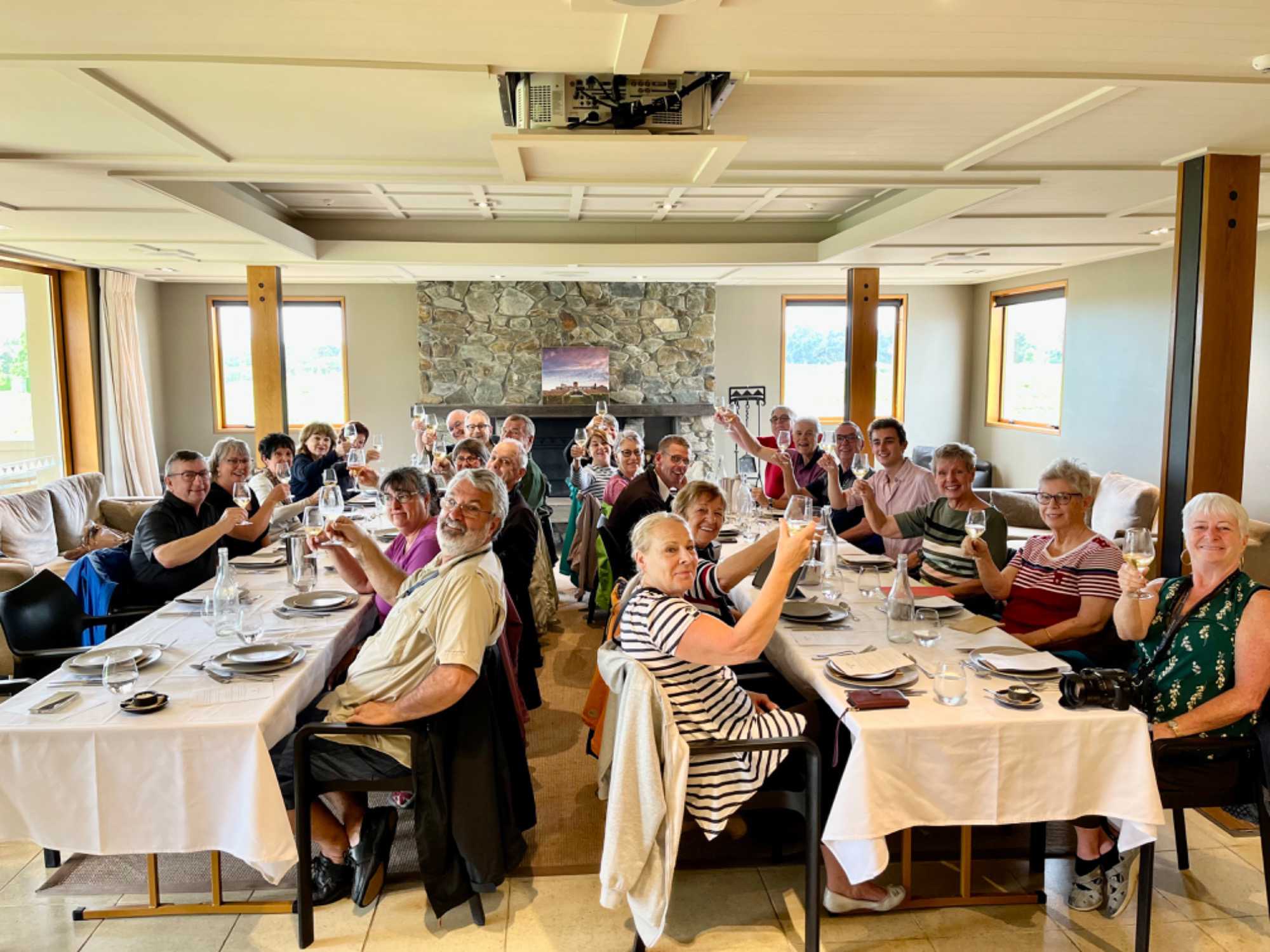 Ce matin, tous nos voyageurs sont à l’heure pour descendre du navire. C’est tellement plaisant de sentir dans notre groupe un tel respect mutuel et être ponctuel. De cette manière, tous peuvent profiter au maximum de nos excursions dans de luxueux autobus nolisés par l’agence Voyage Louise Drouin avec un guide francophone juste pour notre groupe. À l’extérieur du navire, il y a une grande quantité de bois empilé au port. Ces rondins sont principalement envoyés en Chine, au Japon et en Korée du Nord. Les arbres poussent très vite en Nouvelle-Zélande. Un pin prend seulement 25 ans ici pour être d’une bonne taille prêt pour la récolte, comparativement à presque le double d’années en Amérique du Nord d’où ils sont issues. Nous prenons un transport jusqu’au centre d’information de Picton où nous attend notre autobus et notre guide. En chemin, nous croisons une vieille locomotive à vapeur fonctionnant encore au grand plaisir des touristes. Arrivé à Picton, nous retrouvons un jeune guide, Jules, venant de la région de Champagne en France. Il a eu un visa de travail pour venir en Nouvelle-Zélande et il connait très bien le domaine viticole (ayant lui-même travaillé dans le domaine en France) et toutes les subtilités concernant les vins et leurs qualités intrinsèques.