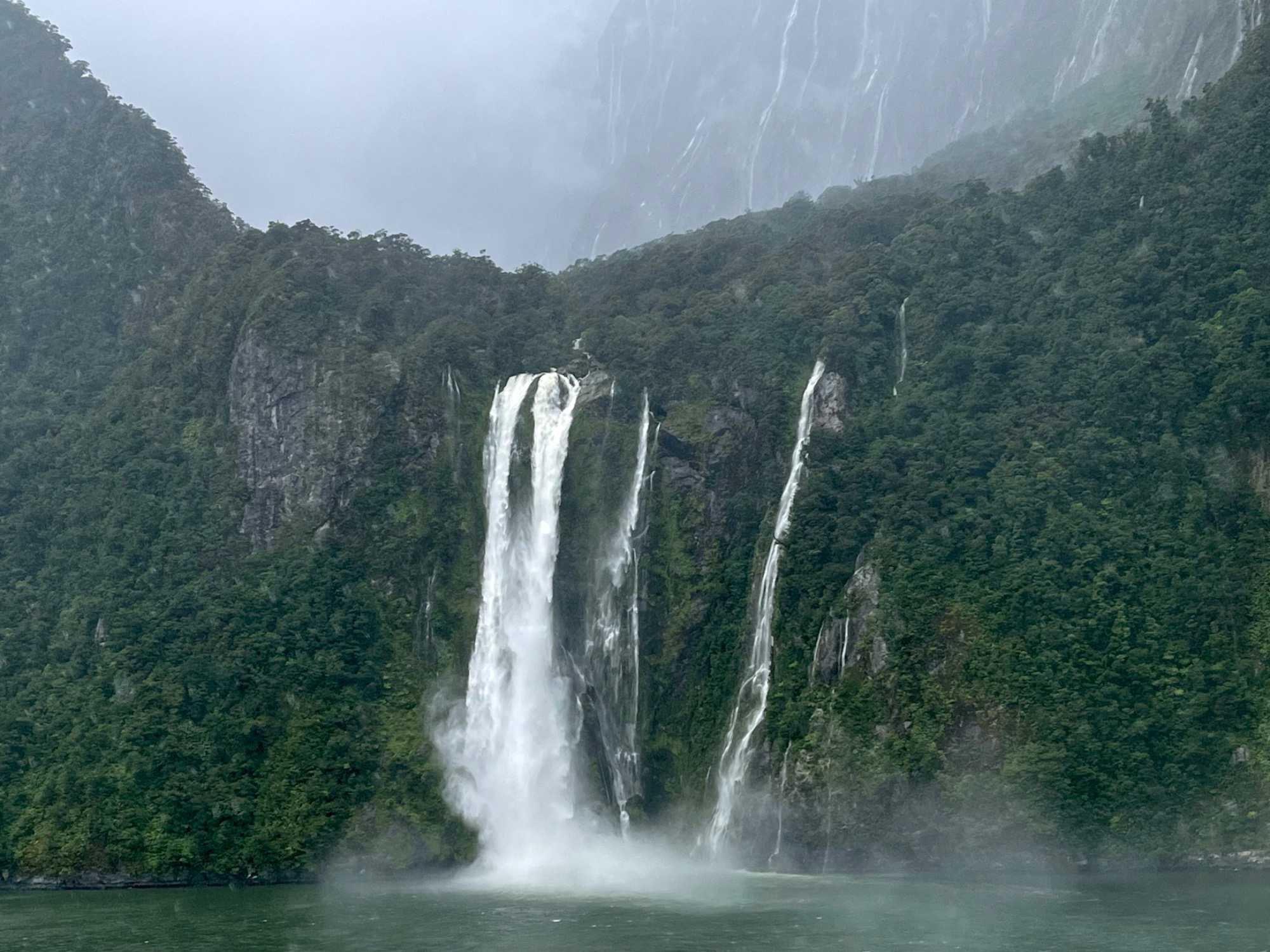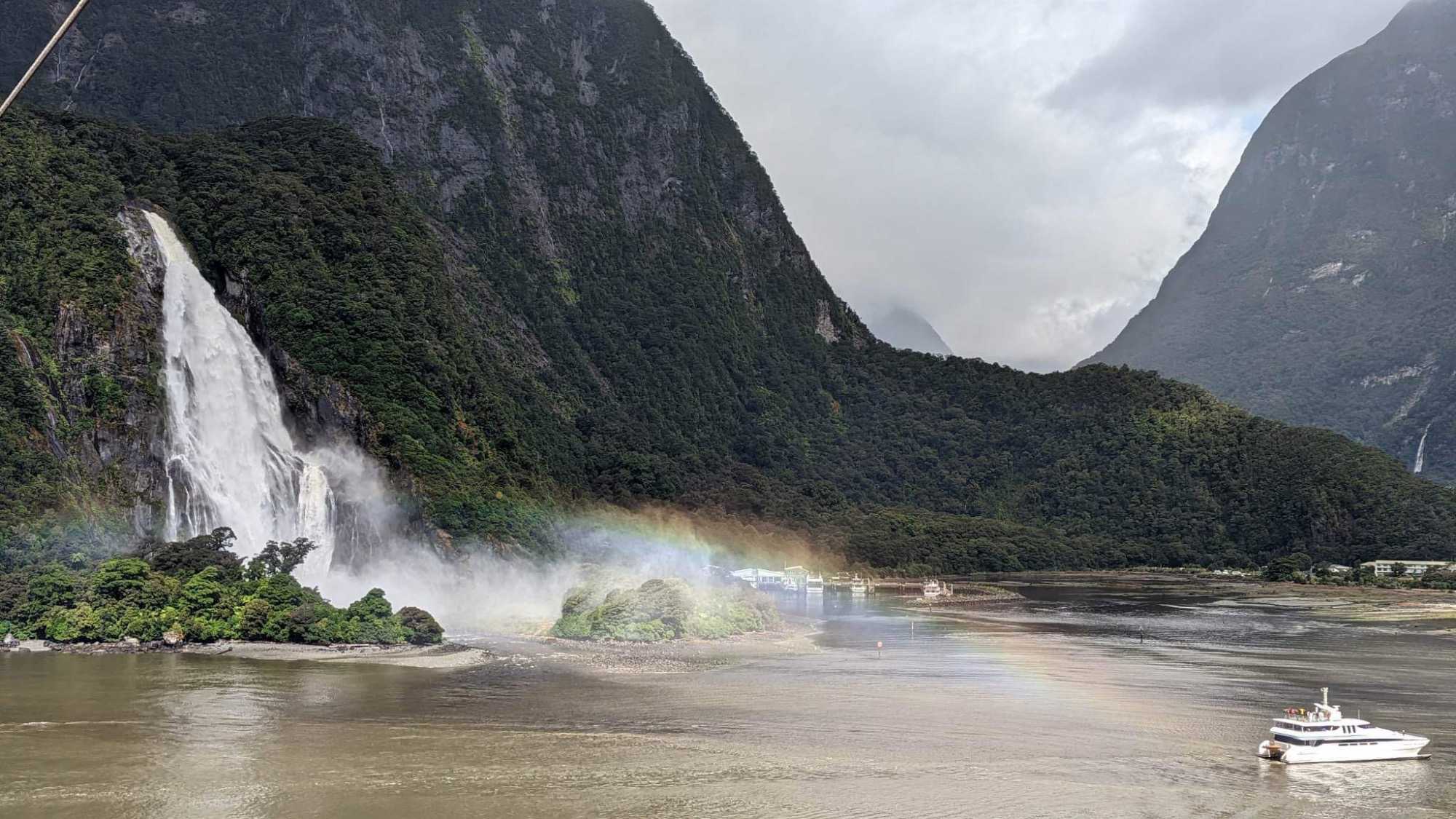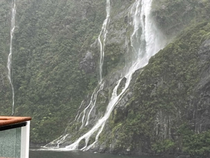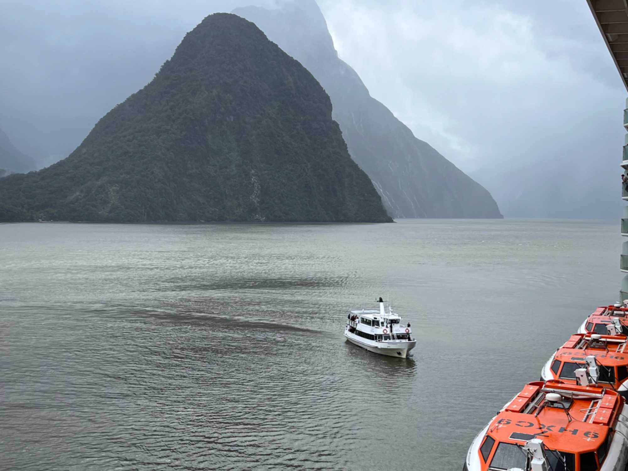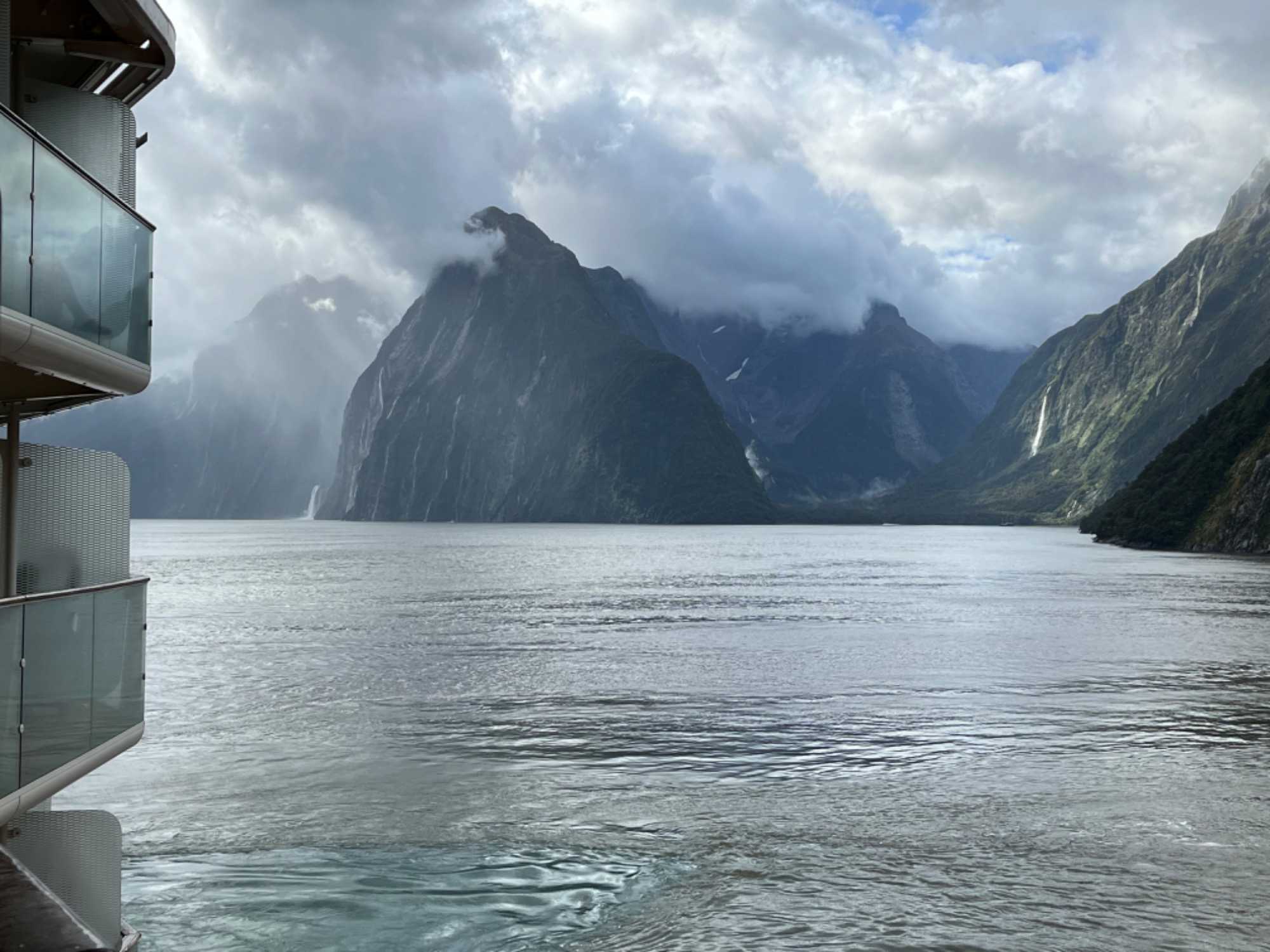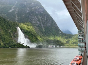 Le dernier fjord, mais non le moindre, est le Milford Sound. Il est situé dans le Sud‐Ouest de l'île du Sud de la Nouvelle‐Zélande, sur la côte Ouest qui donne sur la mer de Tasman. Inclus dans le parc national de Fjordland inscrit avec d'autres parcs néo‐zélandais au patrimoine mondial de l'Unesco sous le nom de Te Wahipounamu, il s'avance d'une quinzaine de kilomètres dans les terres, au cœur des Alpes du Sud. Les parois des montagnes qui l'encadrent atteignent par endroit plus de 1 200 mètres de dénivelé et culminent à 1 692 mètres d'altitude au Mitre Peak, 1 517 mètres à The Elephant et 1 302 à Lion Mountain. La profondeur maximale du fjord dépasse quant à elle les 400 mètres. Les pentes des montagnes sont couvertes d'une forêt pluviale primaire et les eaux du fjord sont peuplées de cétacés comme des phoques et des dauphins. Les Maoris le connaissent et habitent la région depuis un millénaire. Attirés par les paysages qu'offre le fjord, les touristes ont fait du lieu un des premiers sites touristiques de Nouvelle‐Zélande en nombre de visiteurs. Le Milford Sound a prêté sa beauté à la trilogie du « Seigneur des Anneaux », où des scènes ont été tournées en 2001. Le Milford Sound accueille environ 550 000 touristes par an ce qui en fait un des lieux les plus visité de Nouvelle‐Zélande en nombre de visiteurs et ce malgré les difficultés d’accès. Notamment, la durée du transport depuis les zones habitées de l'île du Sud; on doit compter près de 4 heures de route pour y arriver de la ville de Queenstown où nous étions il y a quelques jours déjà. Se rendre est une chose mais retourner à Queenstown le soir est encore beaucoup de route. Voilà une autre bonne raison de faire cette croisière à bord du Celebrity Eclipse. L’itinéraire sur notre navire nous a permis de découvrir un autre point de vue des deux îles de la Nouvelle-Zélande. Avec le volet terrestre en premier et le volet croisière en deuxième, c'est parfait. Ils se complètent à merveille pour un beau voyage dans cette région du monde, il faut vraiment faire les deux.