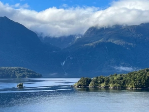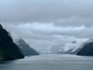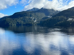 Aujourd’hui nous avons une journée de navigationpour visiter les trois plus beaux fjords de la Nouvelle-Zélande. Ces paysages figurent parmi les plus intéressants du pays et nous irons les voir sur les ponts supérieurs afin de prendre des photos. La journée est vraiment très bien planifiée car le premier fjord se fait à 9 heures, c’est le Dusky Sound. Le deuxième, le Doubtful Sound, est à 11h30 et le dernier, le Milford Sound, est à 15h30 heures, juste avant le souper. Ce coin de pays s’appelle Fjordland. C’est un terrain très accidenté, il fait partie des Alpes du Sud, peu peuplé car il est difficile d’accès.
