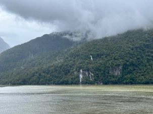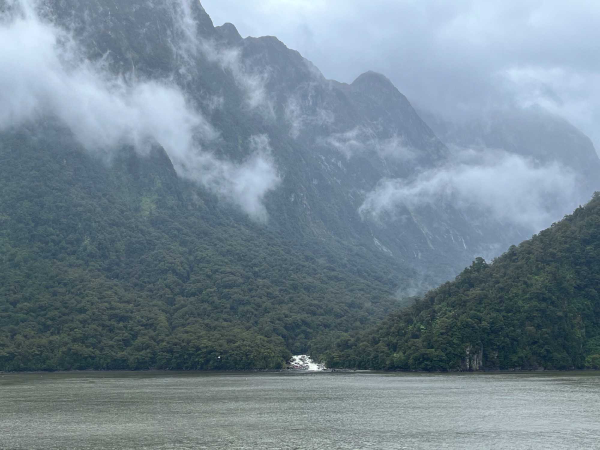 Nous allons par la suite voir le Doubtful Sound qui est un très grand et imposant fjord dans le sud‐ouest de l'île du Sud. Le capitaine Cook lui donna son nom en 1770. Il a choisi le mot « doubtful », qui signifie incertain ou douteux en anglais, car il n’a pas osé entrer dans le fjord; il doutait de sa navigabilité. Il est près de Milford Sound mais plus grand mais moins accessible et donc moins visité. Le fjord a trois branches distinctes et plusieurs chutes. Le terrain accidenté des alentours est connu pour les centaines de chutes d'eau qui surgissent pendant la saison des pluies. Les eaux du Doubtful Sound forment deux couches distinctes qui ne se mélangent pas. La couche supérieure, épaisse de quelques mètres, consiste d'eau fraîche des rivières et des chutes provenant des montagnes aux alentours. La couche inférieure est de l'eau saline de mer. La différence en indice de réfraction entre ces deux couches fait que la lumière y pénètre difficilement. Ainsi, on trouve beaucoup d'espèces vivant très près de la surface. Le fjord abrite l'une des populations les plus australes du monde du grand dauphin; on y trouve plusieurs individus de cette espèce. On y trouve également des otaries à fourrure, des manchots, de nombreuses espèces de poissons, d'étoiles de mer, d'anémones de mer et de corail. Il est connu pour ses coraux noirs, d'habitude trouvés dans des eaux beaucoup plus profondes. Quel spectacle juste pour nous ce matin!