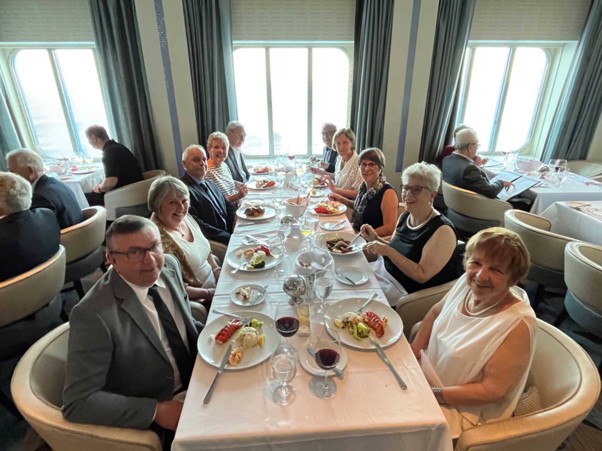 Ce soir nous avons le souper du capitaine avec un souper gala. Au menu, queues de homard, canard à l’orange et le gâteau Alaska bien sûr, c’est le menu classique pour cet évènement…