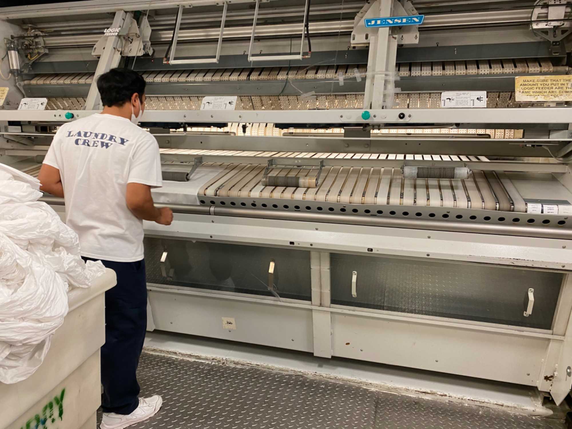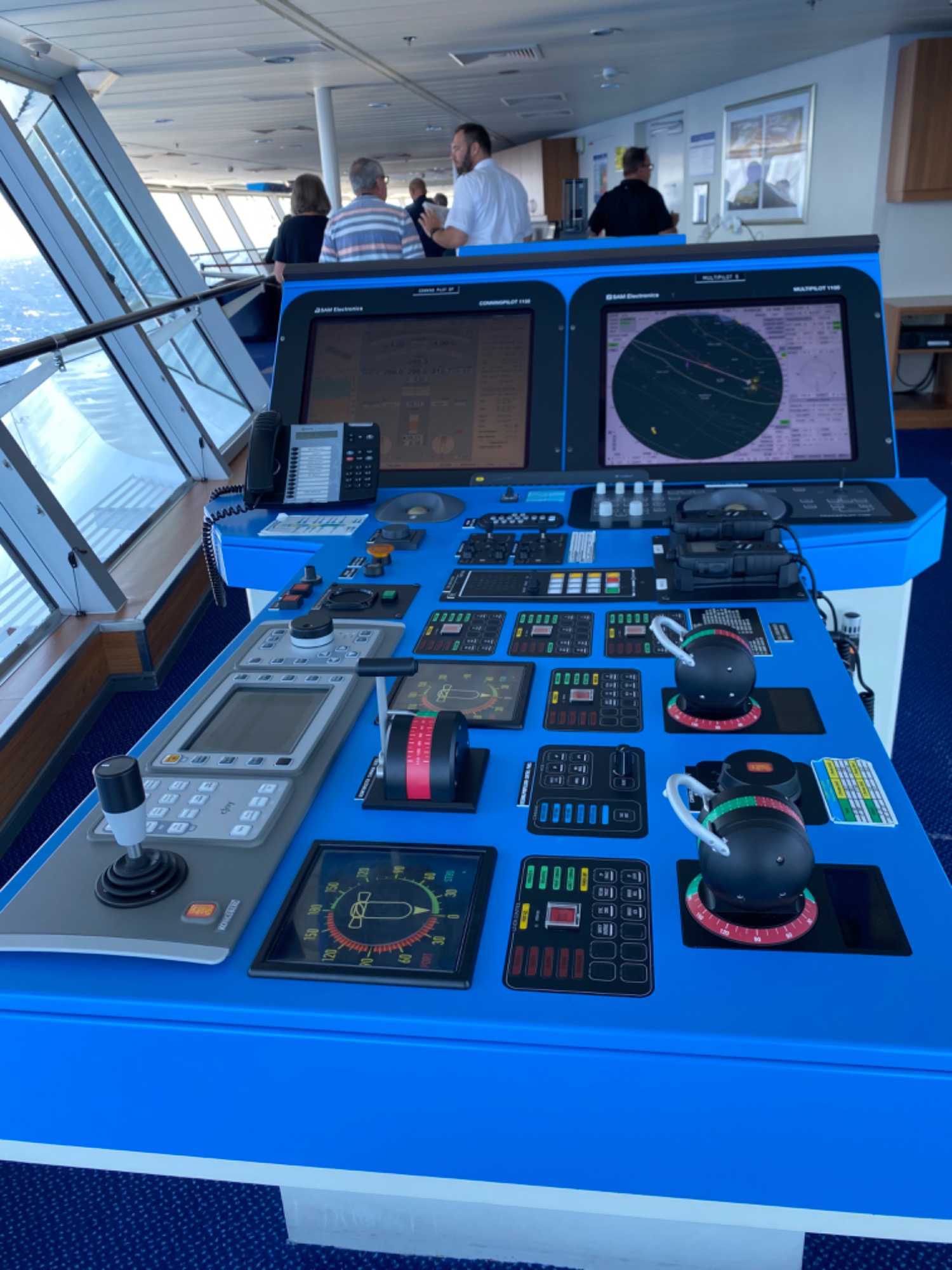 D’autres voyageurs vont faire la visite des coulisses du bateau. On leur a montré les cuisines, la timonerie, la salle des commandes des machines et la buanderie avec sa machine à presser qui plie les nappes et les draps automatiquement.