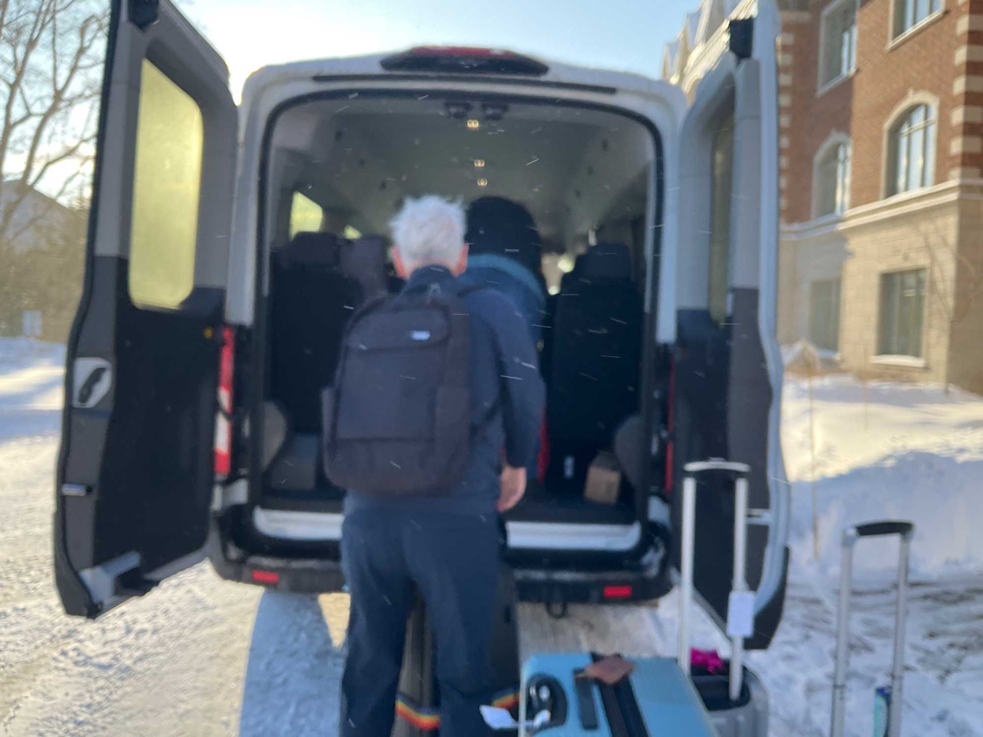Ce matin, pas de problème de stationnement pour un mois car bon nombre d’entre-nous, partons avec les navettes, service de transport organisé par Voyage Louise Drouin. André notre conducteur, s'occupe de notre confort. Juste à verrouiller la porte de la maison et c’est parti. Vous connaissez la chanson? ‘’Il est où le bonheur il est où?’’ Nos collègues de la région de Montréal nous ont rejoints facilement alors que d'autres de la région de Québec avaient vu venir la tempête et avaient opté pour l'hôtel la veille. Tous les chemins mènent...à l'aéroport.
