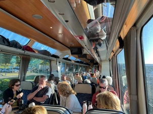Après un bon petit déjeuner, tout ce beau groupe de voyageurs est prêt pour débuter une splendide journée, une journée de panoramas. À l’attaque!