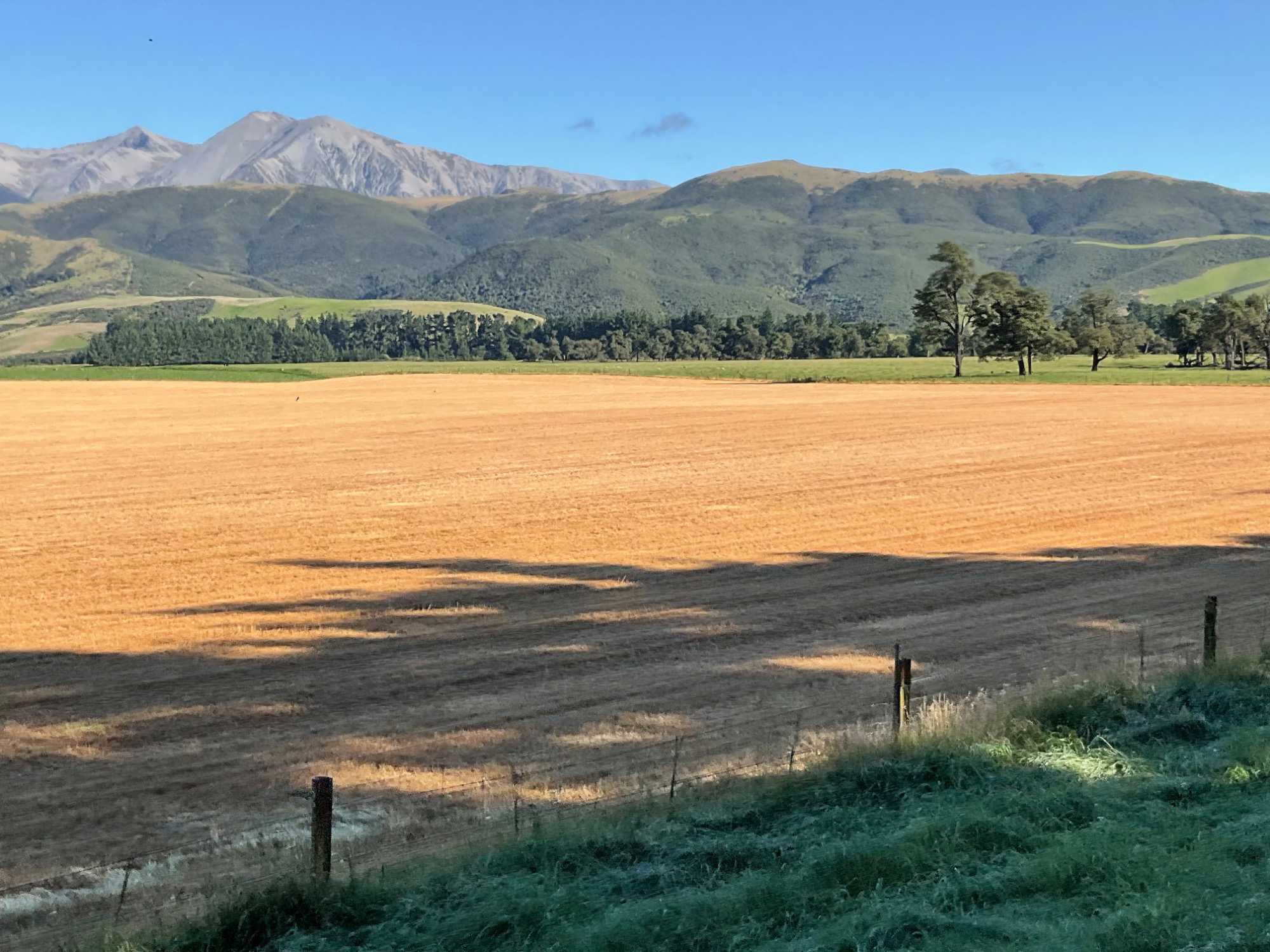 Après 19 km, un petit arrêt à Darfield, qui est situé très près de l’épicentre du séisme de 2010 à Canterbury par sa position et près de l’extrémité de la faille de Greendale. Elle a subi un mouvement deux fois plus important que celui de la ville de Christchurch ce n’est pas peu dire. Des haies bordent le paysage un peu partout, elles servent en fait de coupe-vent entre les terrains. Des ruches y sont également déposées en grand nombre, sûrement pour les abeilles qui y font le précieux miel de Manuca. On vous en reparlera, un peu plus tard au cours de notre voyage.
