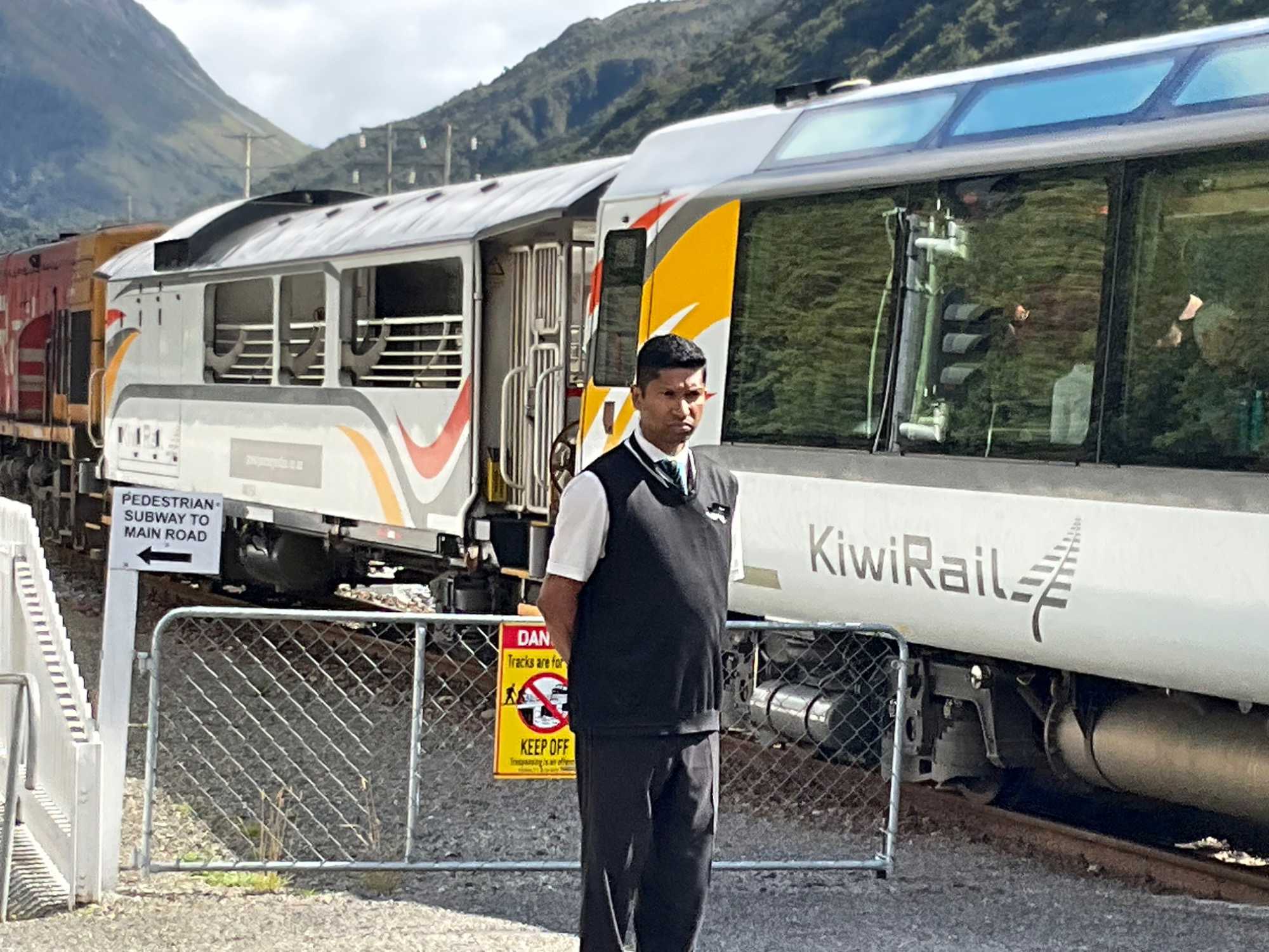 Ce matin, on a délaissé l’avion pour le train. Avec le Tranz Alpine Express, nous irons de Christchurch à Greymouth pour passer d’une côte de la Nouvelle-Zélande à l’autre. Le Tranz Alpine devient incontestablement la plus belle ligne de chemin de fer en Nouvelle-Zélande. Notre itinéraire? Un départ à 8h15 pour une arrivée cinq heures plus tard à Greymoutn (13h10) avec un total de 167 km qui aurait été de 243 km par la route, pour un maximum de 315 passagers (5 wagons passagers) . Et on a toujours Claudie pour nous aviser des points importants à retenir mais, on doit vous avouer que nos yeux et notre cœur sont devenus tout à coup polyglottes et…nous comprendrons rapidement la magnificence des lieux. À Christchurch, la station pour ce train, ouverte en 1993 est d’allure plutôt moderne. Le wagon de tête construit entre 1972-1975, ne compétitionnerait pas avec la vitesse des TGV européens car sa vitesse maximale est de 105 km/heure. Mais nous ce matin, on a tout notre temps. Notre vitesse moyenne de 48 km/heure permet d’observer les paysages plus longuement et les wagons de passagers, beaucoup plus modernes (2010-2020), présentent une belle grande fenestration pour admirer les paysages longeant plusieurs rivières avec les Alpes du Sud, neige aux sommets et lacs en prime, en se dirigeant vers la côte ouest, des gorges spectaculaires et des viaducs. Aura-t-on assez de mémoire sur notre disque dur, voire ici notre cerveau, pour tant de beauté? Et oui, on l’a eu!