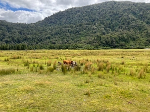 On poursuit vers l’entrée du tunnel ferroviaire historique d’Otira, le plus long 8.5 km de roches, une prouesse d'ingénierie épique qui marque la transition entre Canterbury et la West Coast. Le village qui tire son nom du tunnel compte…11 habitants, pas trop difficile de les connaître par leur nom. Et l’on poursuit avec nos lacs et rivières, la plaque du Pacific australien avec ses roches de granit et maintenant, ses vaches noires et blanches qui broutent dans les champs sans se soucier de nous. On a aimé le nom d’un autre hameau:, Moana, qui signifie ‘’né de la mer’’ qui n’est pas très loin d’ici. Le lac Brunner à ses côtés invite les friands de la voile dans ce charmant endroit de villégiature avec sa saisissante vue sur le Mont Te Kinga.