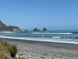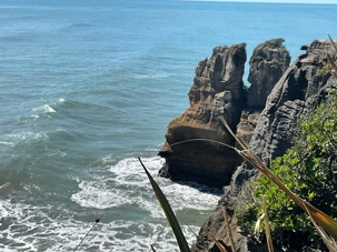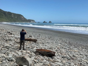 Puis nous prenons la direction de la route panoramique du Paparoa National Park, l'un des plus récents et des plus petits parcs nationaux de Nouvelle-Zélande créé en 1987 et ne s'étend que sur 30 600 hectares (75 600 acres). Sa porte d’entrée a pour nom Punakaiki. Cette municipalité s'étend de la mer de Tasman aux luxuriantes chaînes de montagnes verdoyantes de Paparoa. Avec sa forêt tropicale et ses plages de sable blanc au loin, on peut voir qu’elle est très différente du monde alpin du parc national d'Arthur's Pass. Arrêter à un belvédère, nous clics clics se font allé pour garder en mémoire, le panorama avec ses rochers dans la mer, la forte mer de Tasman, ce fut suffisant pour faire courir Nicole pour se mettre les pieds à l'eau suivi de Josée qui elle, s'est fait prendre par une vague. On appelle ça; vivre le moment présent.