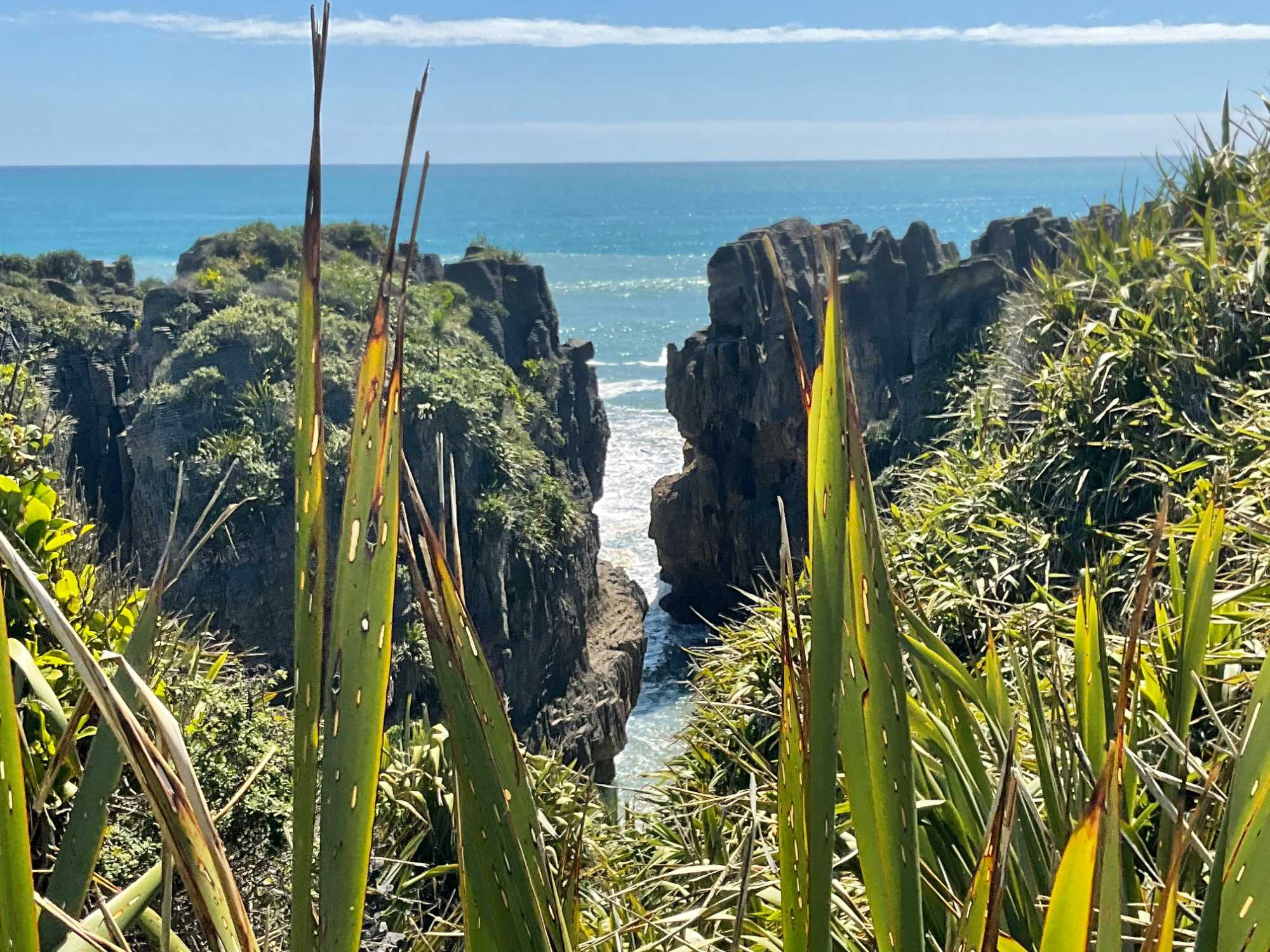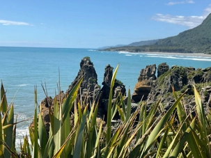 Punakaiki abrite les ‘’Pancake Rocks’’ et l’étrange relief de cette côte de l’île du Sud nous fascine sur ce trajet de 40 km, le long de la côte de Punakaiki, utilisé jadis pour transporter du pounamu (jade) sculpté et de la pierre brute qui servait à des fins commerciales.