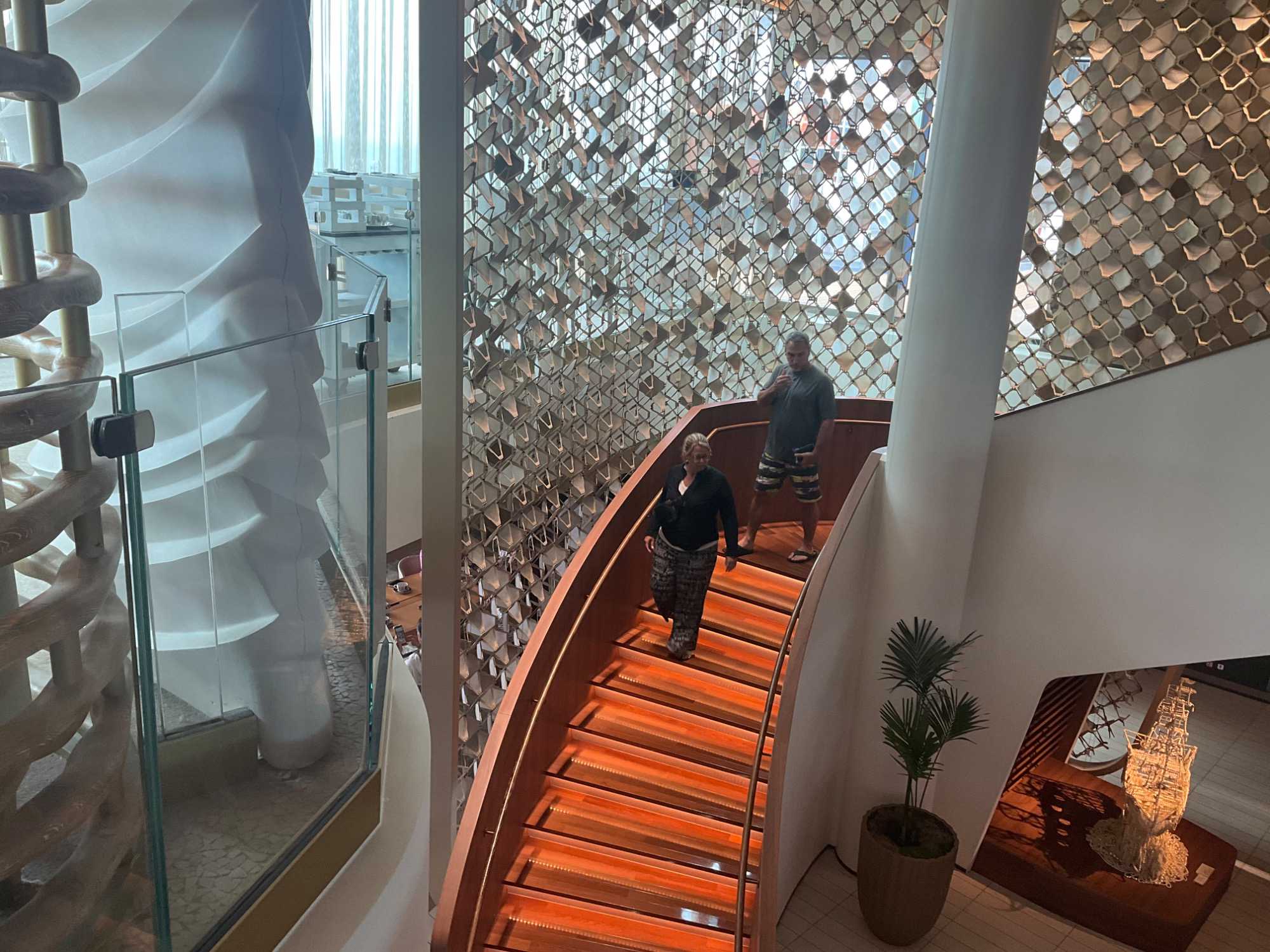 Lors de notre embarquement sur le Celebrity Edge au jour 19 de notre voyage, nous vous avions donné des informations techniques du navire. On vous parlait qu’il y avait 16 ponts (étages) dont certains donnent accès à l’extérieur. On en a tous profité mais aujourd'hui c'était plutôt frisquet.