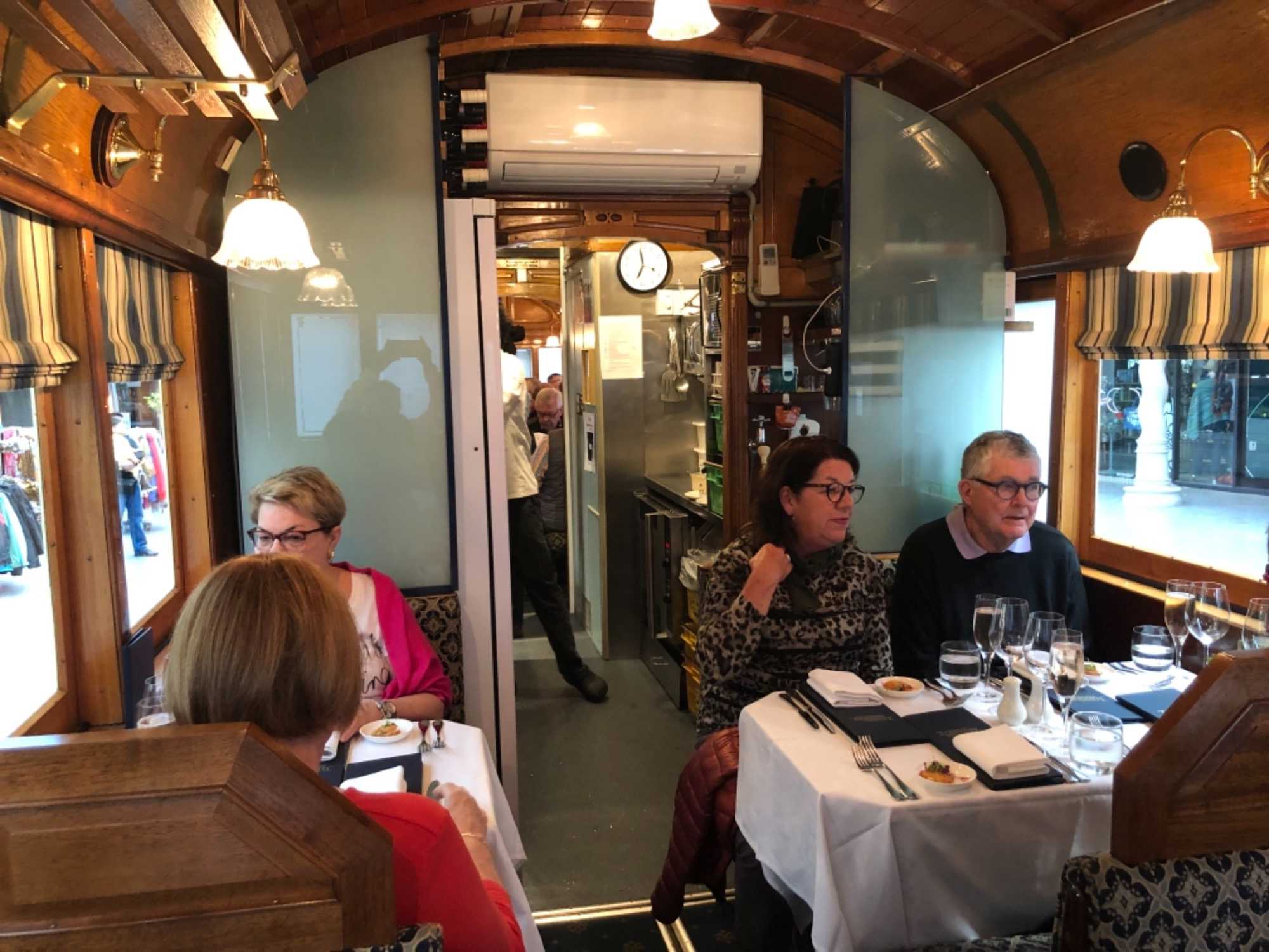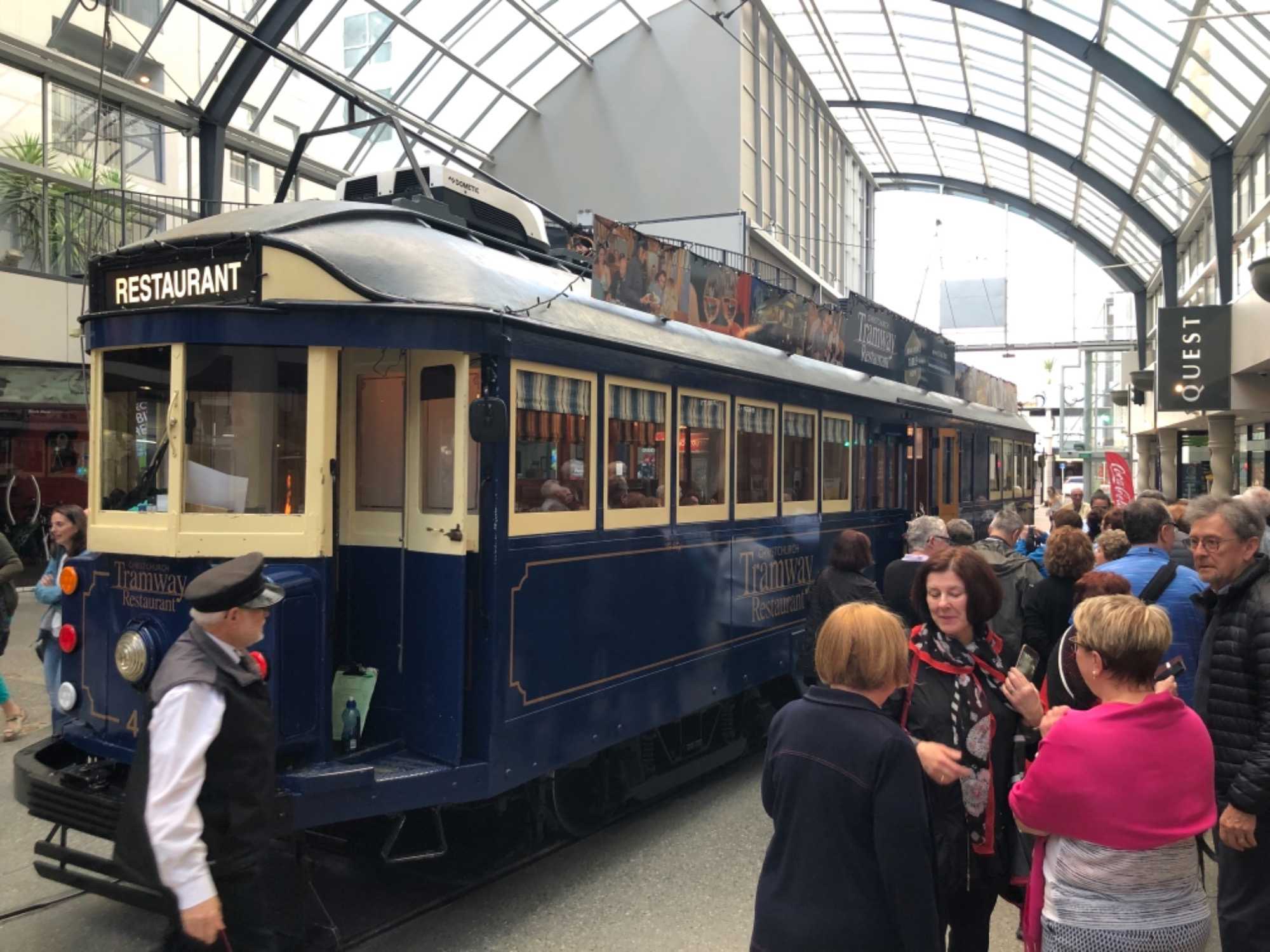 En soirée, c’est à la station de tramway Cathedral Junction que nous nous rendrons afin…de souper à bord du tramway de Christchurch!! Luxueux, ce tramway de style colonial de 36 places nous offre un service impeccable et la meilleure cuisine de même que les meilleures boissons de toute la Nouvelle-Zélande. Nous aurons droit à un souper accord mets et vins. Quelle belle expérience nous attend. Je vous en parlerai demain.