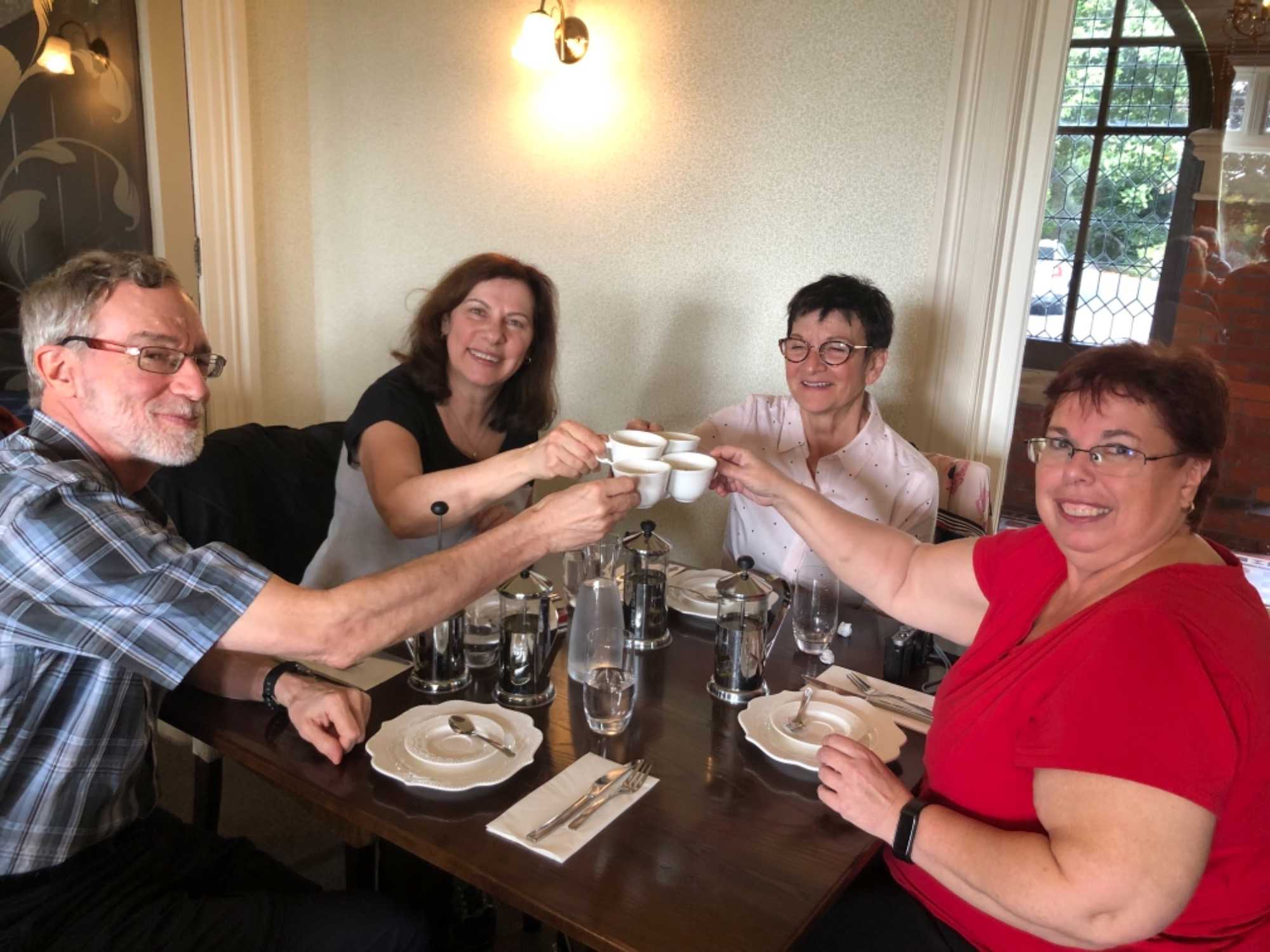 Nous voici donc arrivés à Christchurch où notre guide Claudia et notre chauffeur David, nous accueillent pour une journée d’orientation avant de nous emmener à notre hôtel. Comme notre arrivée était prévue vers 10 h25 et que la sortie avec les valises se ferait 45 minutes plus tard, j’avais organisé avec mon fournisseur, de faire une petite surprise à mes voyageurs en organisant un petit lunch dans une charmante maison de thé située au cœur d’un magnifique jardin sur le bord de la rivière Avon. Nous avons donc été accueillis pour le « High Tea » au grand bonheur de mes voyageurs qui étaient enchantés de l’idée.