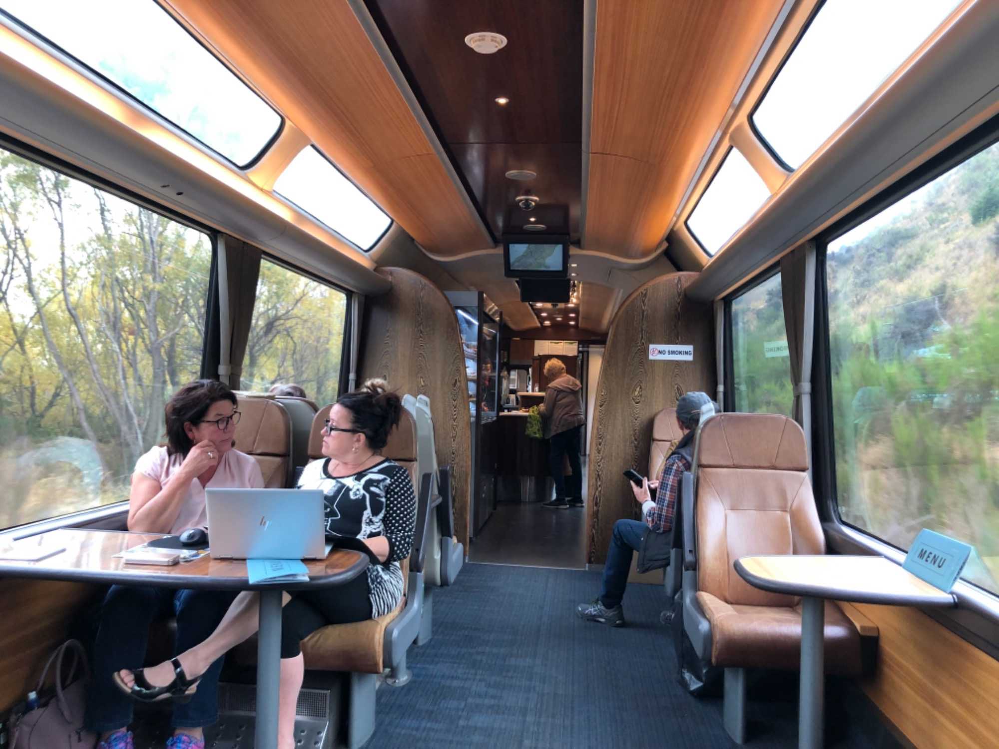 Après une autre excellente nuit de sommeil, les effets du décalage se font un peu plus discrets. Belle température et il fait déjà 16 degrés tôt ce matin. Après le petit-déjeuner, nous nous dirigeons vers le train Tranz Alpine Express pour passer d’une côte à l’autre du pays.