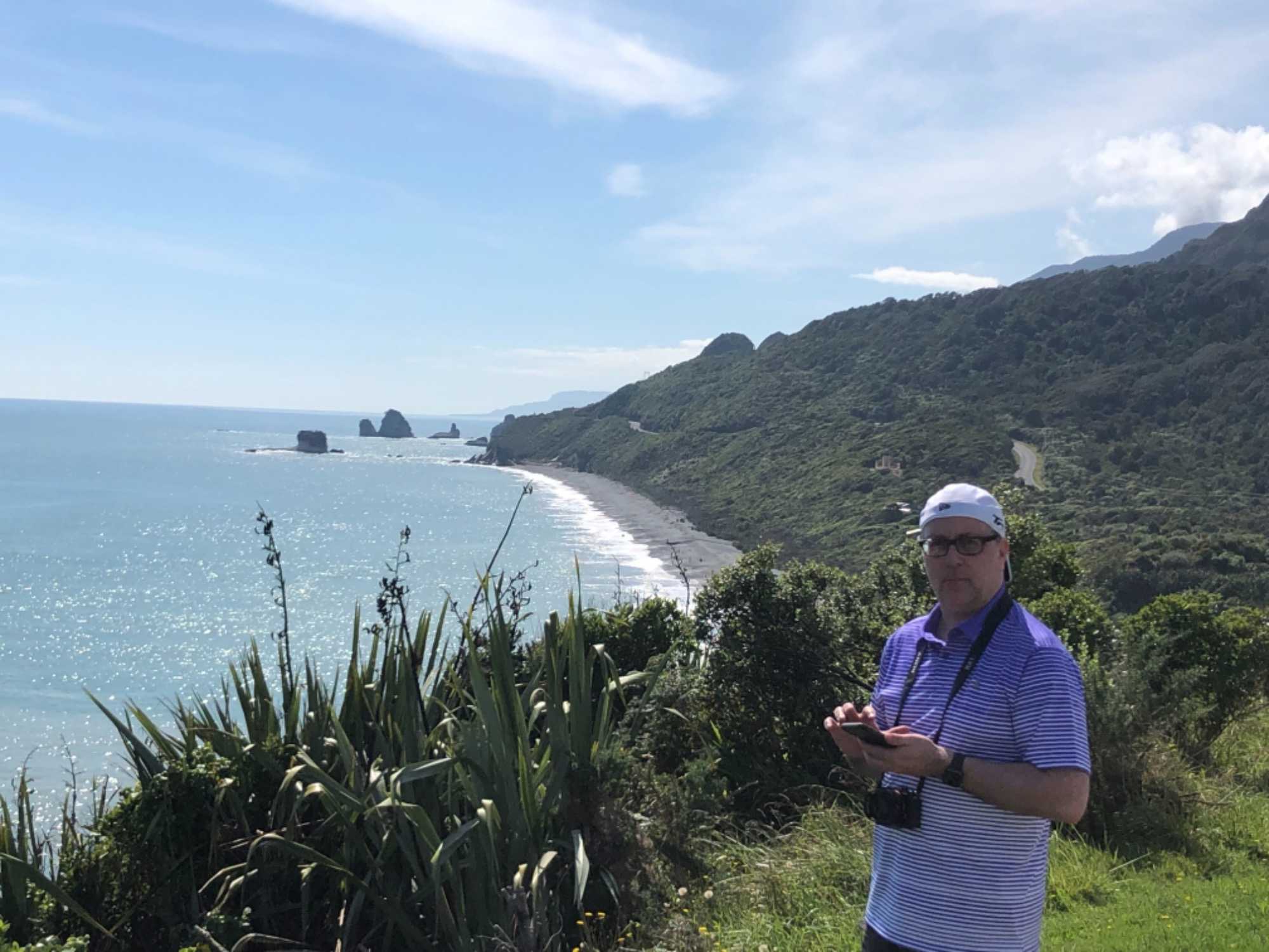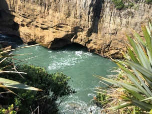 Dès notre arrivée, nous partons en autocar, passant par la route panoramique qui nous mène au Paparoa National Park. Fondé en 1987, il recouvre 308 km2, de la côte aux pics de la chaîne de Paparoa. Une autre section du parc, séparée du reste, est au nord, autour du ruisseau Ananui. Cette route me fait tantôt penser à la route no 1 de la côte californienne ou bien, à certains passages, à la route qui entoure la belle île de Maui à Hawaii. Elle est splendide et nous en profitons bien sous la conduite prudente de notre chauffeur David.
