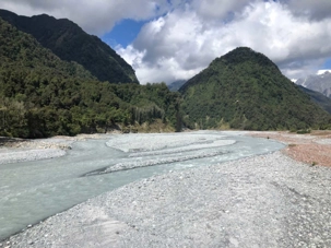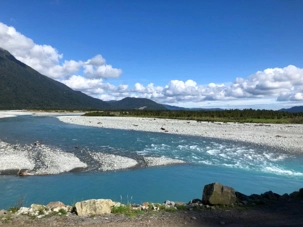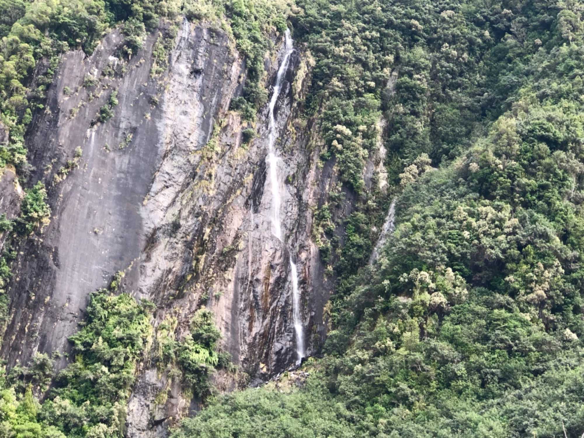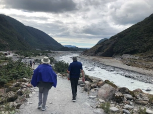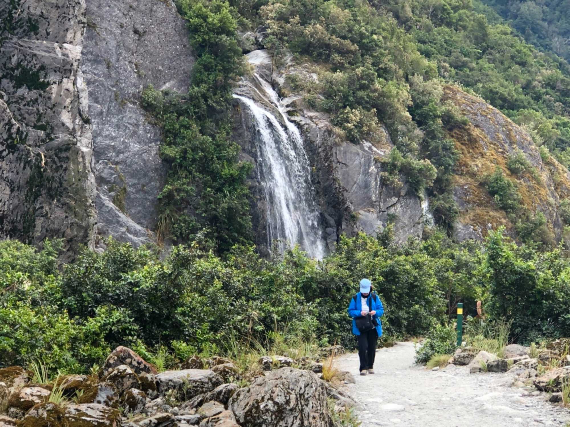 Pour s’approcher de Franz Josef, nous avons marché une bonne heure. Le premier quart d’heure de marche se fait à travers la forêt, avant de longer le lit de la rivière pour le reste de la randonnée. Cascades et rochers escarpés la marche est vraiment jolie. La température était parfaite pour marcher et Loulou était heureuse par la bonne forme de tous ces voyageurs qui prenaient plaisir à faire cette randonnée. Quel beau groupe de voyageurs nous avons ! Après notre survol nous avons retrouvé le groupe et avons fait une plus petite marche mais qui fût des plus agréables.