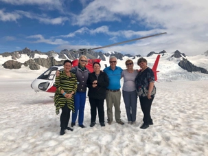 Puis, nous reprenons la route vers le Sud jusqu’aux glaciers de Franz Josef et de Fox. Vous ne trouverez nulle part au monde un glacier qui s’étend si près de l’équateur et si près de la surface de la mer soit 250 mètres de la mer de Tasman. À notre arrivée, nous avons quartier libre pour manger un petit lunch avant d’entreprendre notre après-midi. Il fait un soleil radieux et vraiment très chaud soit environ 24 degrés. Quelle belle journée!!!! Les restaurants offrent de belles terrasses et on en profite pour manger à l’extérieur. C’est vraiment très bon. À14 h 00, heures nous nous retrouvons et 10 personnes m’accompagnent pour aller faire le survol des glaciers. Nous sommes fébriles de découvrir les magnifiques glaciers Fox et Franz Josef du haut des airs. Le survol de 30 minutes inclus un atterrissage sur le glacier Franz Josef. Quelle belle expérience surtout sous un ciel si bleu et une température parfaite. J’ai réussi à prendre de belles photos je crois avec mon Iphone car Loulou elle faisait la marche avec les autres voyageurs. Nous aurons de bien belles photos à vous partager. Le survol avec un pilote qui comptait 9 années d’expérience fût magique. Nous sommes débarqués sur le glacier qui était une surface dure à notre grande surprise. Nous y sommes demeurés un bon 10 minutes à profiter de ce moment de contemplation. Je suis privilégiée de vivre ces moments que l’on n’oublie jamais.