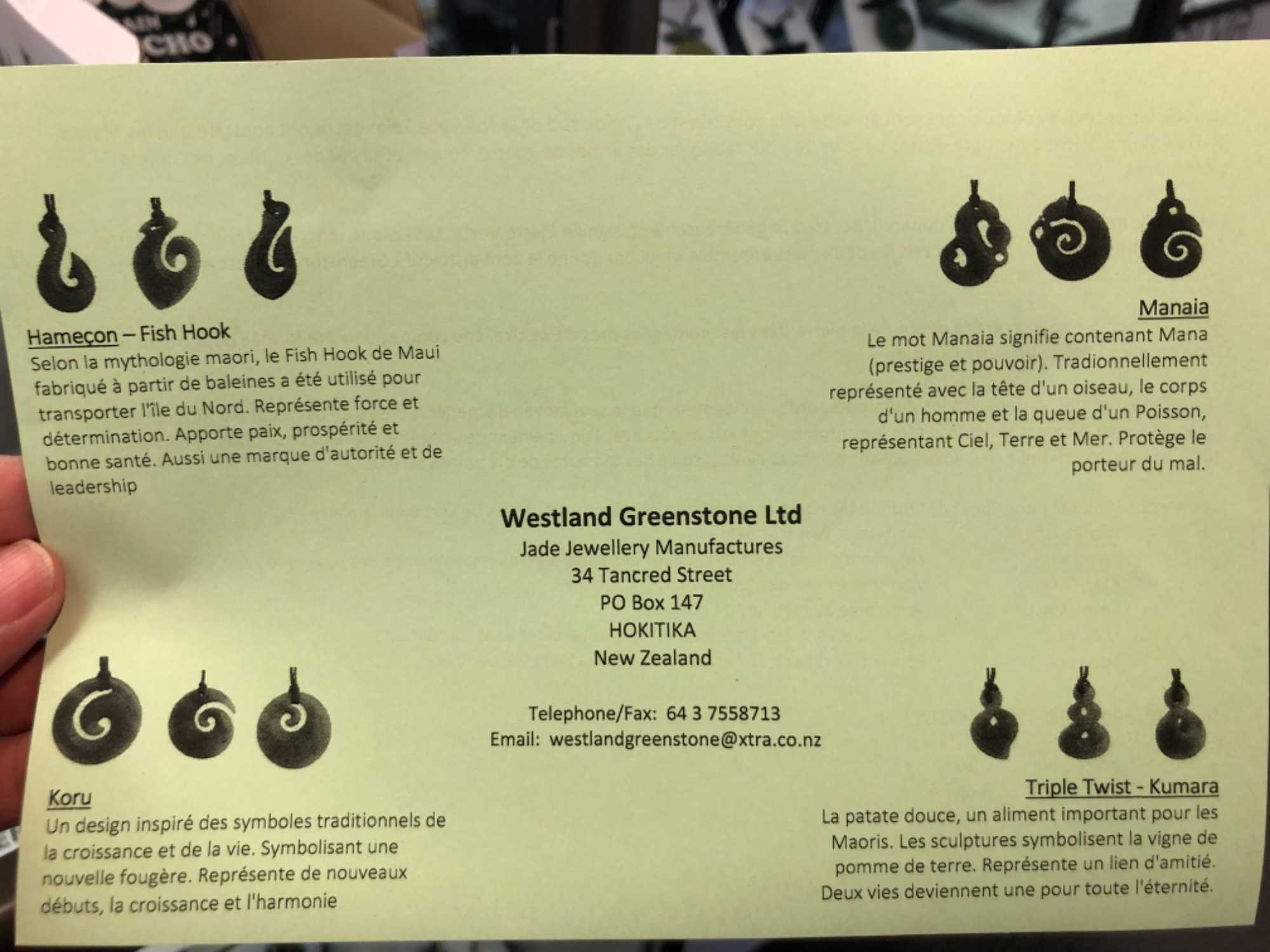 Hokitika a été créé en 1860, après la découverte de l'or sur la côte ouest. Ce fut un port important mais de nombreux bateaux ont échoué sur le tristement célèbre « Hokitika Bar », un banc de sable qui se déplace à chaque marée. La ville est une ville touristique et surtout parfaite pour y pratiquer notre sport en voyage. Claudia nous donne des informations sur le pounamu (pierre précieuse). Le fleuve Arahura, qui se jette dans la mer au nord d'Hokitika, est une source traditionnelle de pounamu (pierres précieuses). Née dans les entrailles volcaniques de l'île du sud, la "greenstone" est l'un des symboles de la Nouvelle-Zélande. Voici un peu d’histoire de cette pierre semi précieuse et la symbolique des pièces traditionnelles.