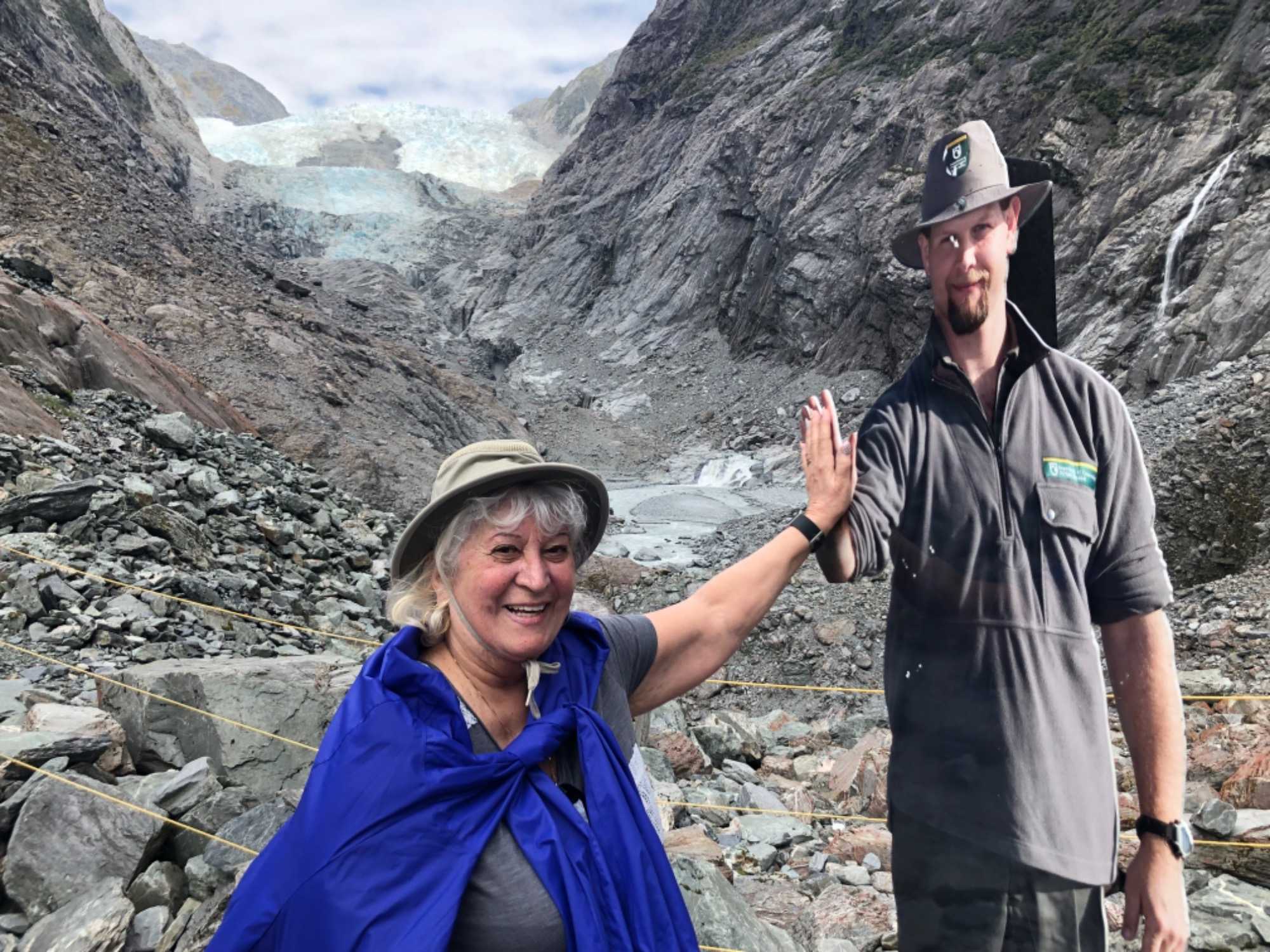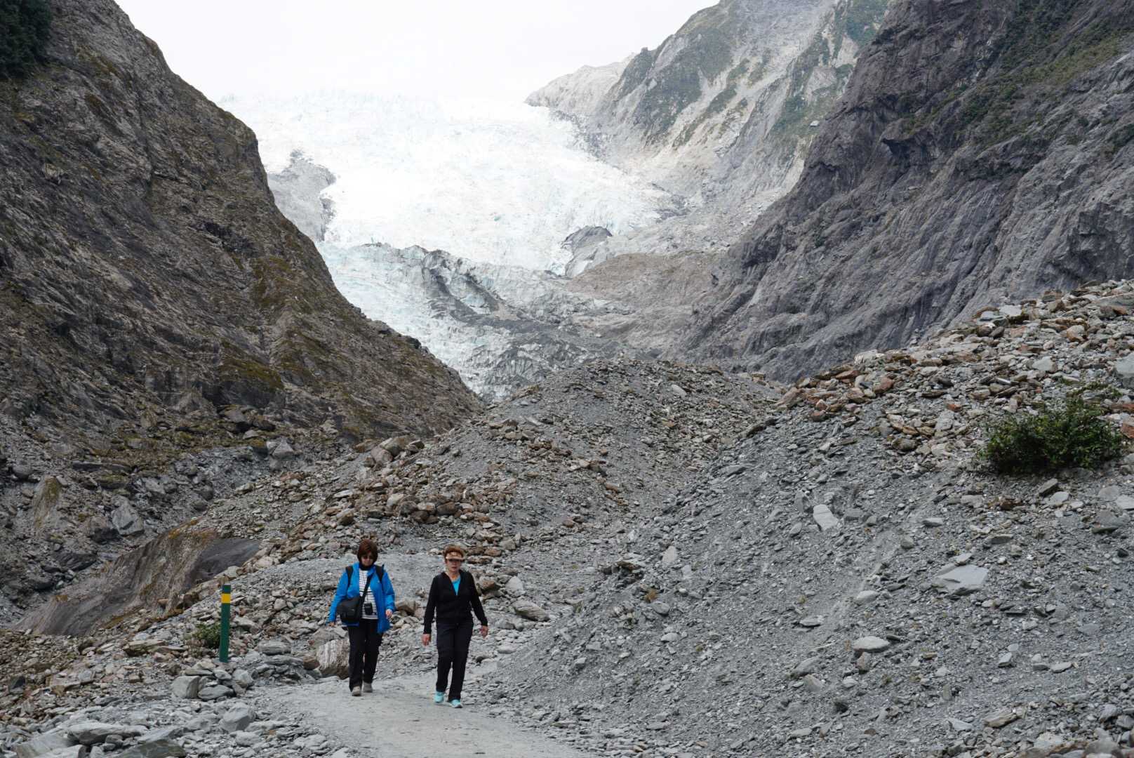 Claudie et Louise sont partis avec le reste du groupe pour aller faire la découverte de cet incroyable glacier. La Nouvelle-Zélande est un des rares pays où l’on peut admirer des glaciers descendre si bas en altitude (250 m), et si proche de l’océan, insolites dans cet univers de forêt tropicale, de roches et d’eau.
