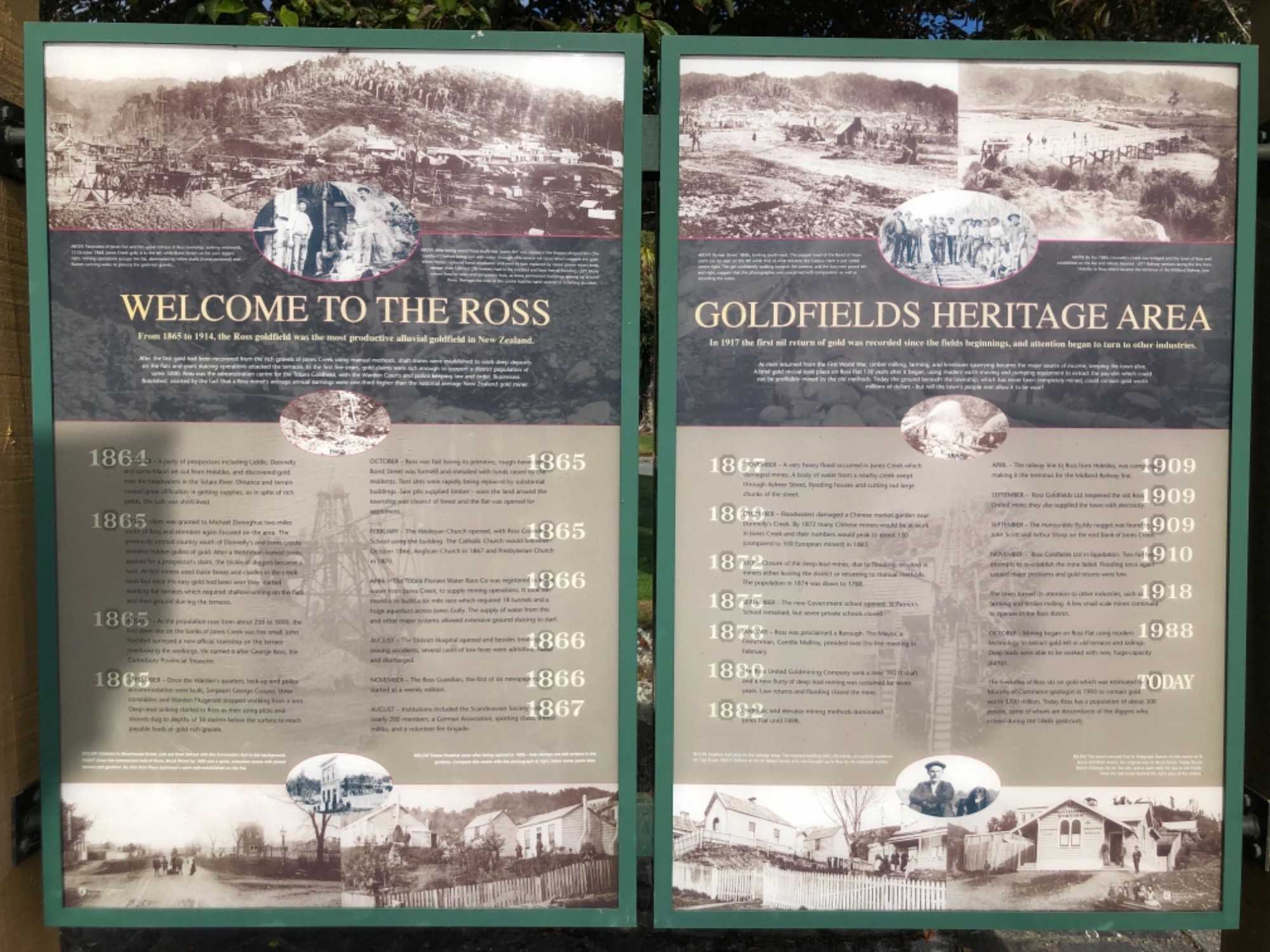 Nous quittons Hokitika et nous continuons à longer la côte ouest. Vingt minutes de route et nous voilà à Ross, ville minière au moment de la ruée vers l'or à la fin du 19ième siècle. On raconte que la plus grosse pépite d'or de Nouvelle-Zélande ( 2,8kg ! ) aurait été trouvée là.