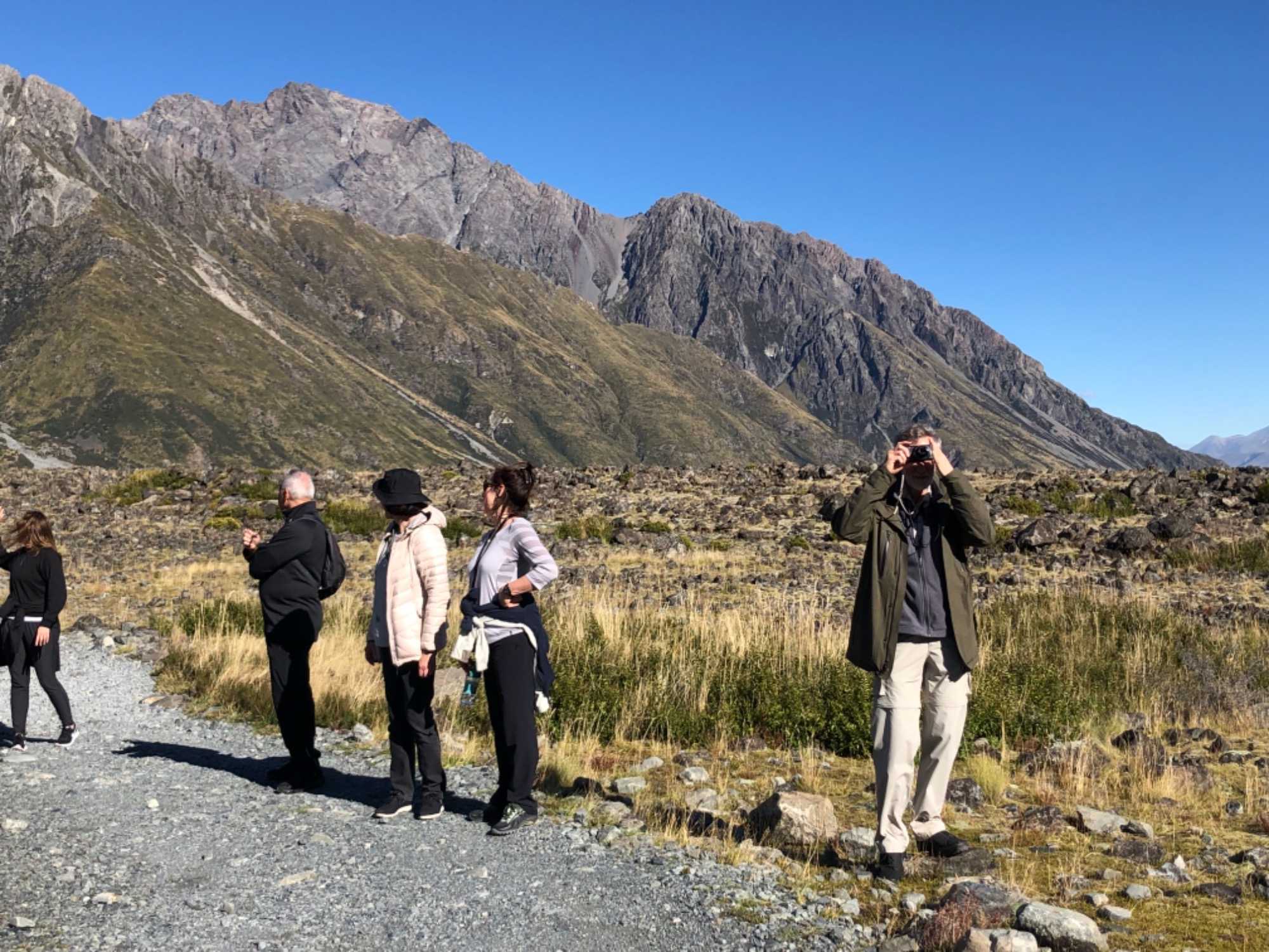 Ensuite, un arrêt que tous ont beaucoup apprécié dans le coeur restauré de la vieille ville de Cromwell. En 1953, le parc national Aōraki/Cook de Nouvelle-Zélande rejoint le patrimoine mondial de l’UNESCO. Ce monde de roche et de glace possède 158 sommets couverts de neiges éternelles. Au fil du temps, le canoë se changea en pierre pour devenir l'île du Sud de la Nouvelle-Zélande. Les passagers formèrent la chaîne des Alpes, et Aōraki le frère aîné devint le sommet le plus élevé du pays. En réalité, les Alpes du Sud sont nées du choc entre les plaques tectoniques australienne et pacifique.