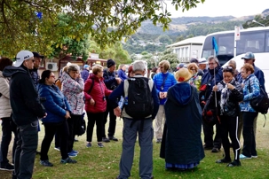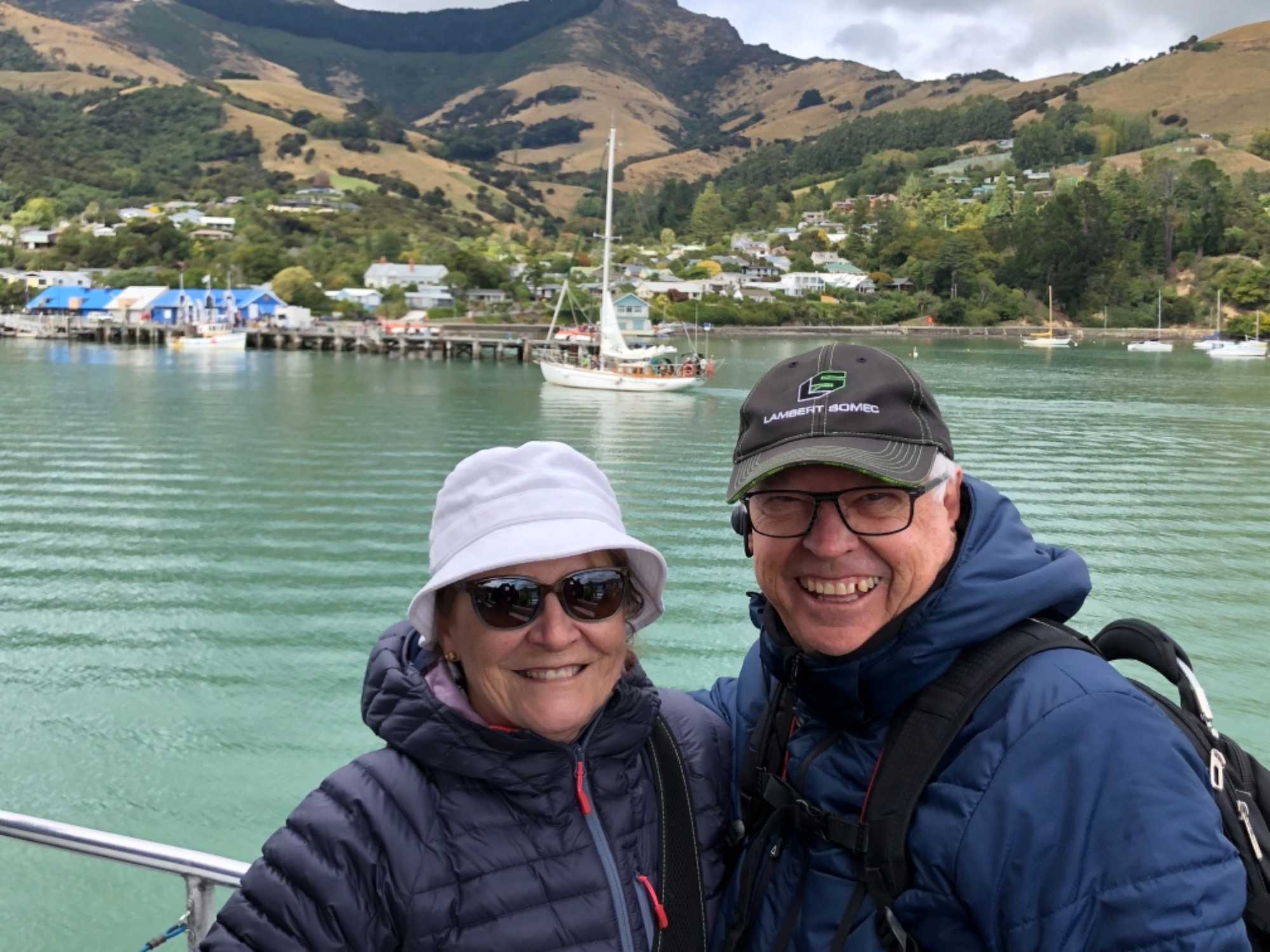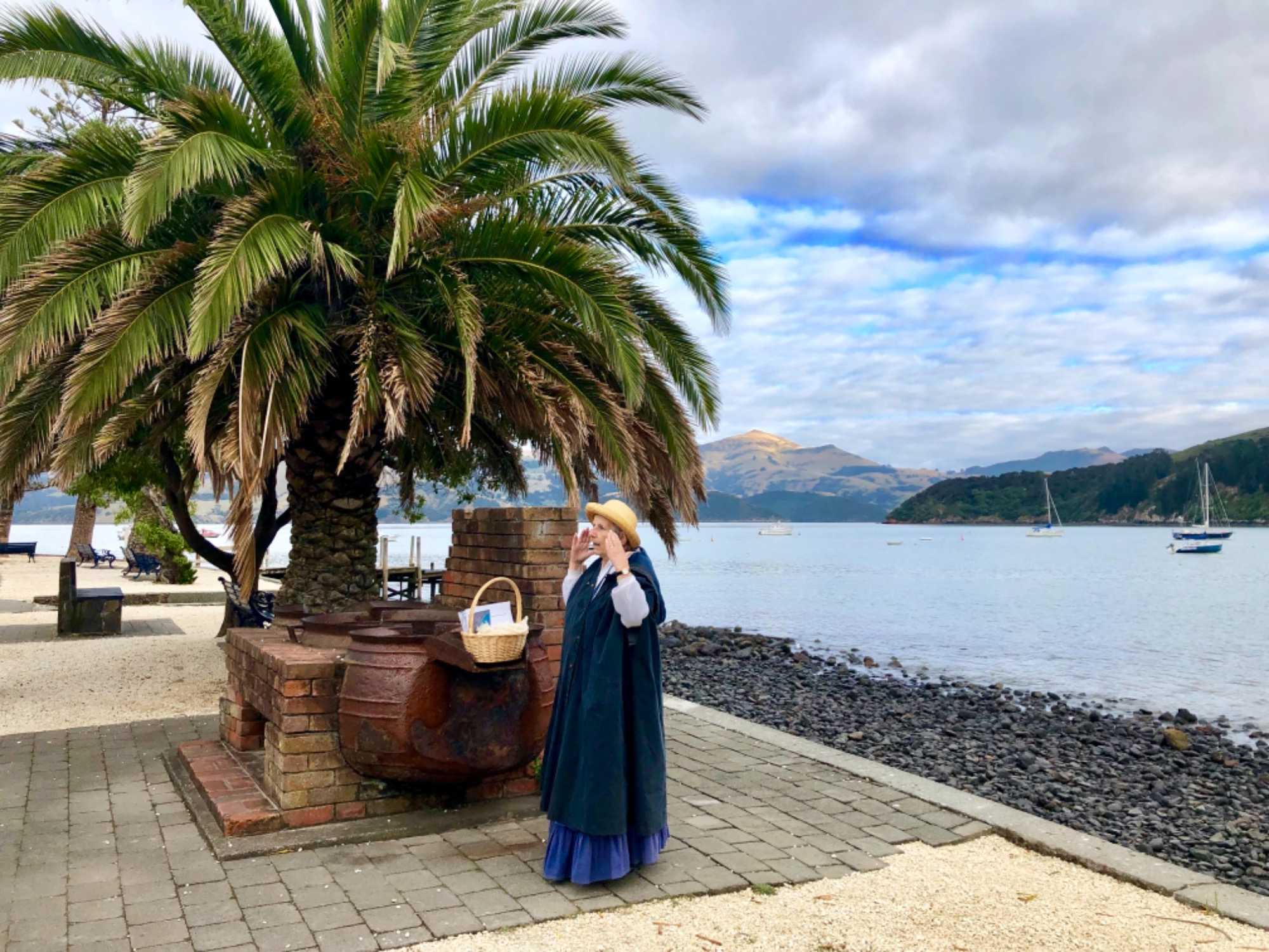 Toujours dans l’île du Sud, c’est à Akaroa que nous faisons escale ce matin. La température est très clémente surtout que nous attendions un 13 degrés nous sommes choyés de débarquer avec un bon 17 degrés en matinée tandis qu'en après-midi, nous avons atteint probablement 23 degrés avec un soleil radieux. La température est bien agréable pour débuter notre sortie ce matin. Le bateau navette nous amena au port en 20 minute sur une mer bien calme. Nous avons tout d’abord rencontré nos guides car nous avions divisé notre groupe en 2 petits groupes afin de bien suivre nos guides locaux. Nos guides se présentent en costume d’époque et sont absolument charmantes. Guides passionnées et surtout avec un humour théâtral. Quel belle visite nous avons fait: deux heures à nous balader dans la ville en écoutant les époques de la colonisation. Voici un peu d’histoire pour la ville d’Akaroa, qui est un village situé dans la péninsule de Banks. À une distance de 75 kilomètres de Christchurch, la ville la plus proche, le village comptait environ 600 habitants au dernier recensement.