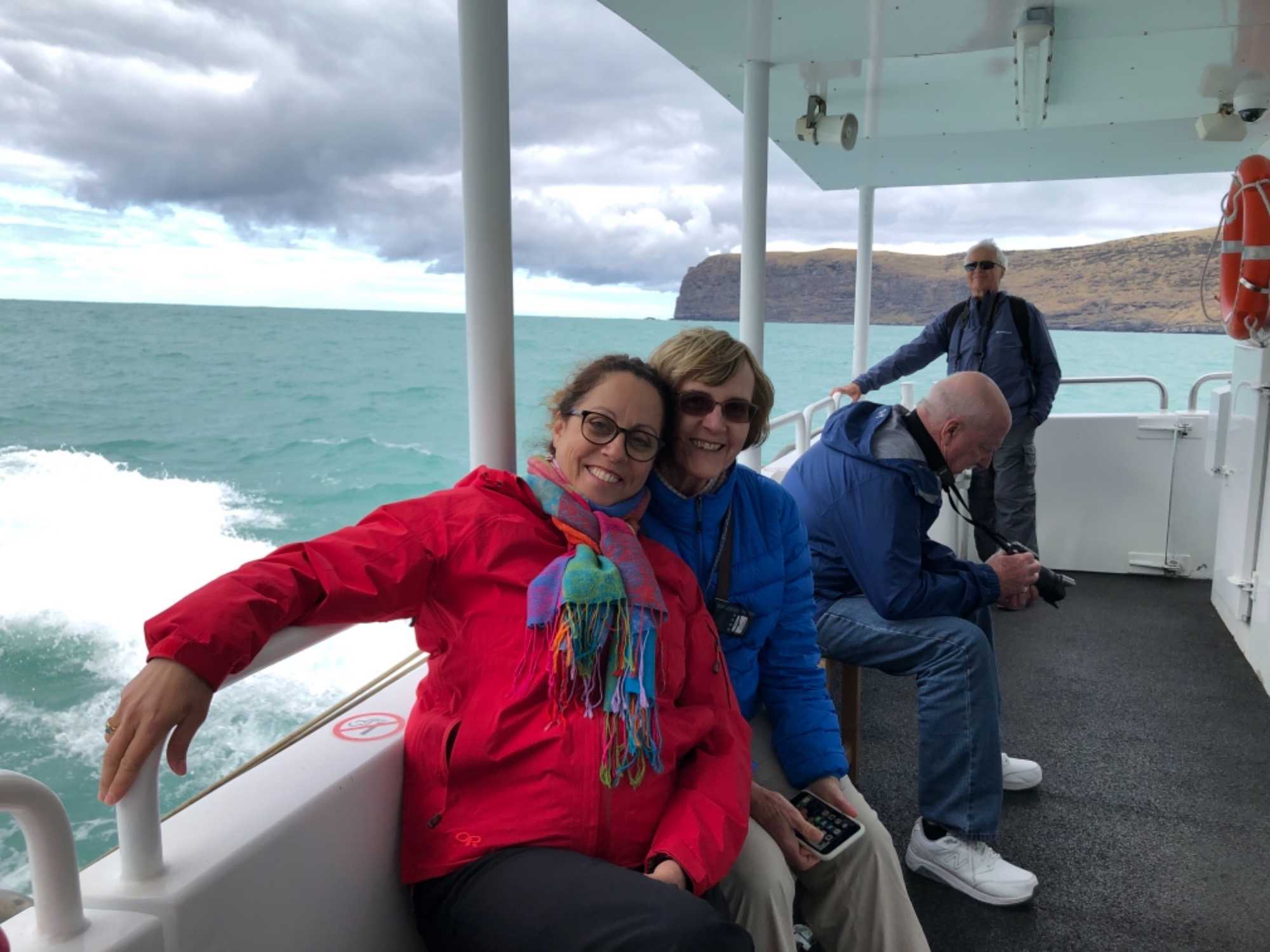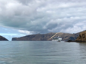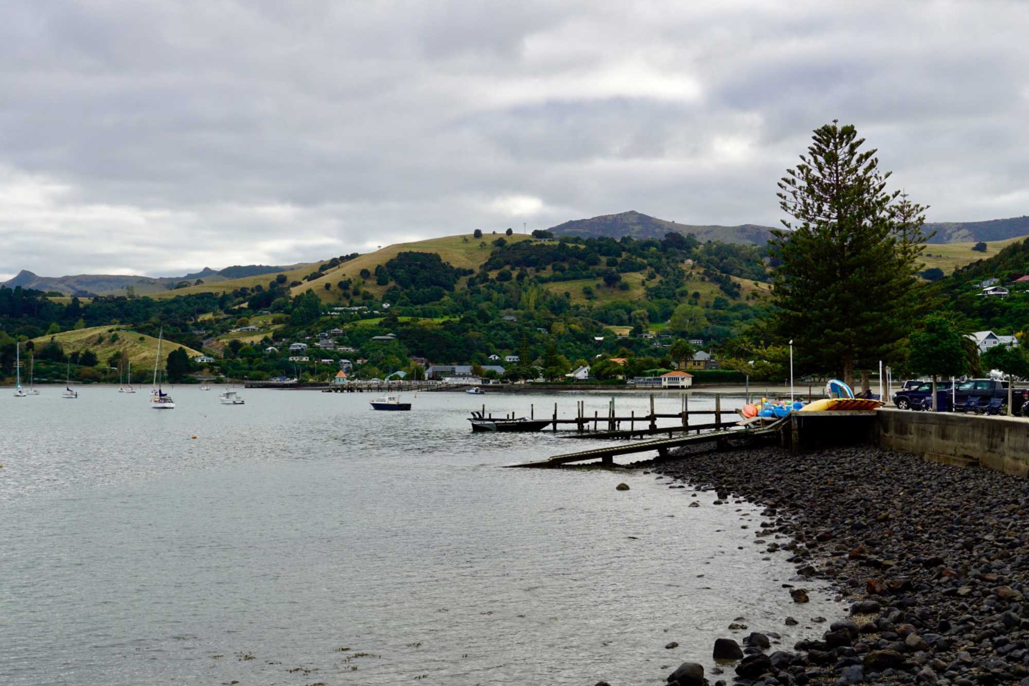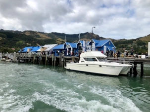 Nous rencontrons notre guide à la marina d’Akaroa puisque nous continuons la matinée avec une croisière de deux heures à la découverte de magnifiques baies sculptant le paysage.