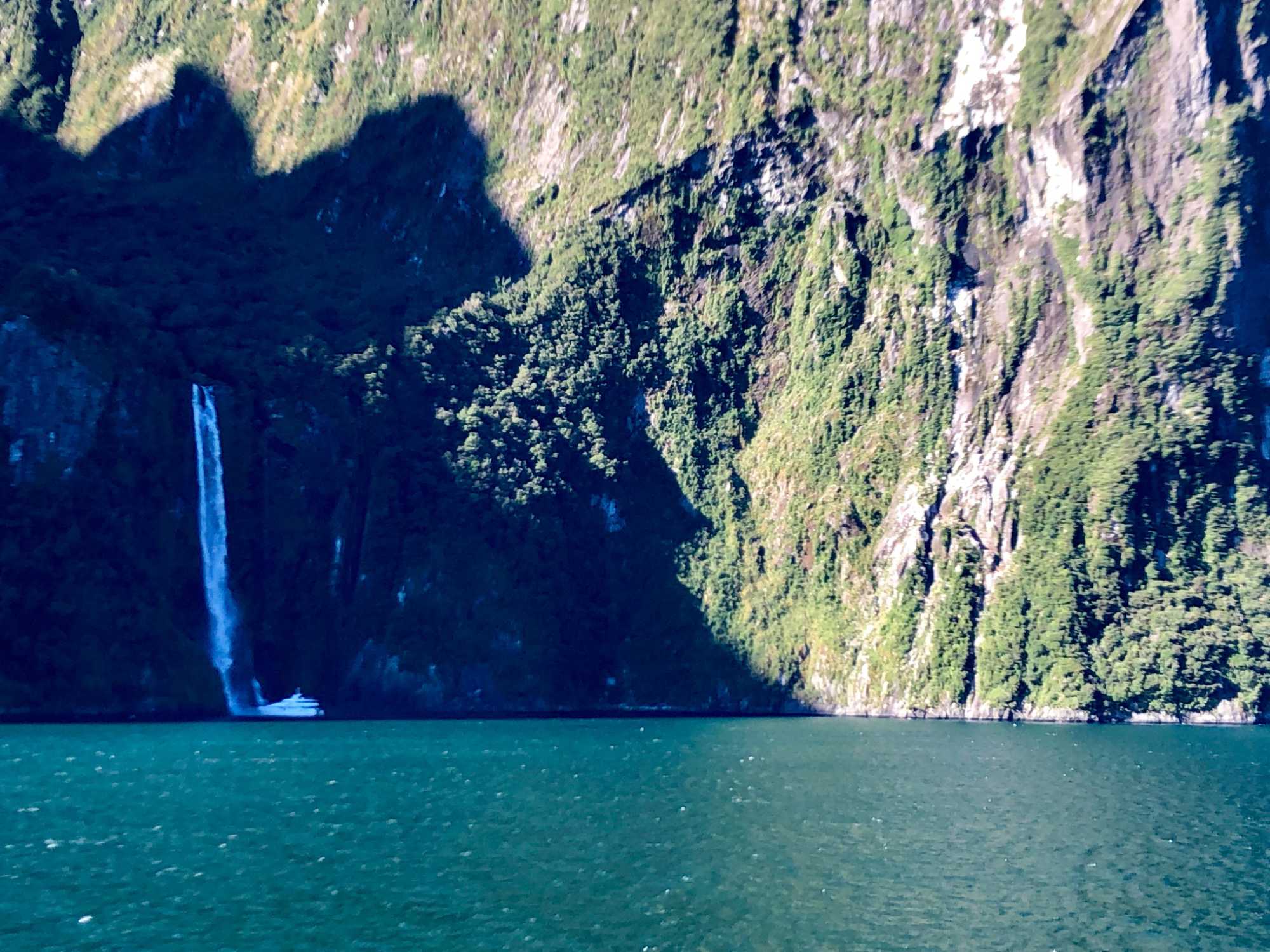 Nous avons par la suite attendu notre 2ième entrée de la mer de Tasman vers le Doubtful Sound qui est un très grand et imposant fjord dans le sud‐ouest de l'île du Sud. Il est près de Milford Sound, plus grand mais moins accessible et donc moins visité. Le fjord a trois branches distinctes et plusieurs chutes, notamment Helena Falls à Deep Cove et Browne Falls, hautes de plus de 600 mètres. Le terrain accidenté des alentours est connu pour les centaines de chutes d'eau qui surgissent pendant la saison des pluies.
