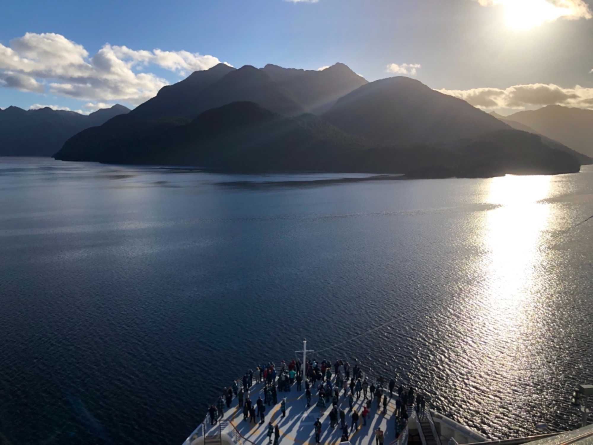 Nous traverserons 3 fjords principaux dont je vous parle ici. De plus, la journée, sans le vouloir, est vraiment très bien planifiée car le premier Fjord est prévu à 9 heures et c’est le Dusky Sound. Le deuxième est prévu de midi à 13 heures, ce qui nous permet d’aller au lunch et le dernier sera vers 16 h 30, donc avant le souper. Nous n’aurions pas pu avoir mieux.