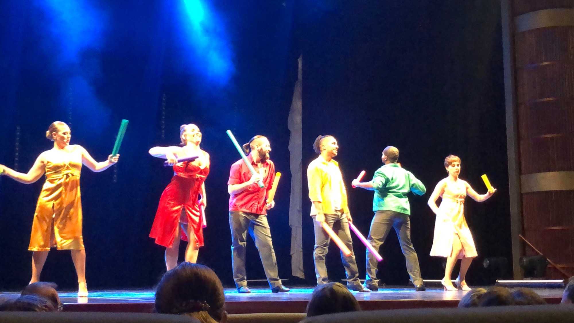 Ce soir, nous avons eu notre dernier souper chic et nous avons à nouveau fait le tour des tables pour prendre des photos de nos beaux voyageurs. Le spectacle, ce soir était particulièrement beau avec les danseurs et chanteurs. Un spectacle moderne reliant la danse et les acrobaties. Digne du cirque du soleil! Un petit pas de dans à la disco silencieuse et nous voilà au lit maintenant!