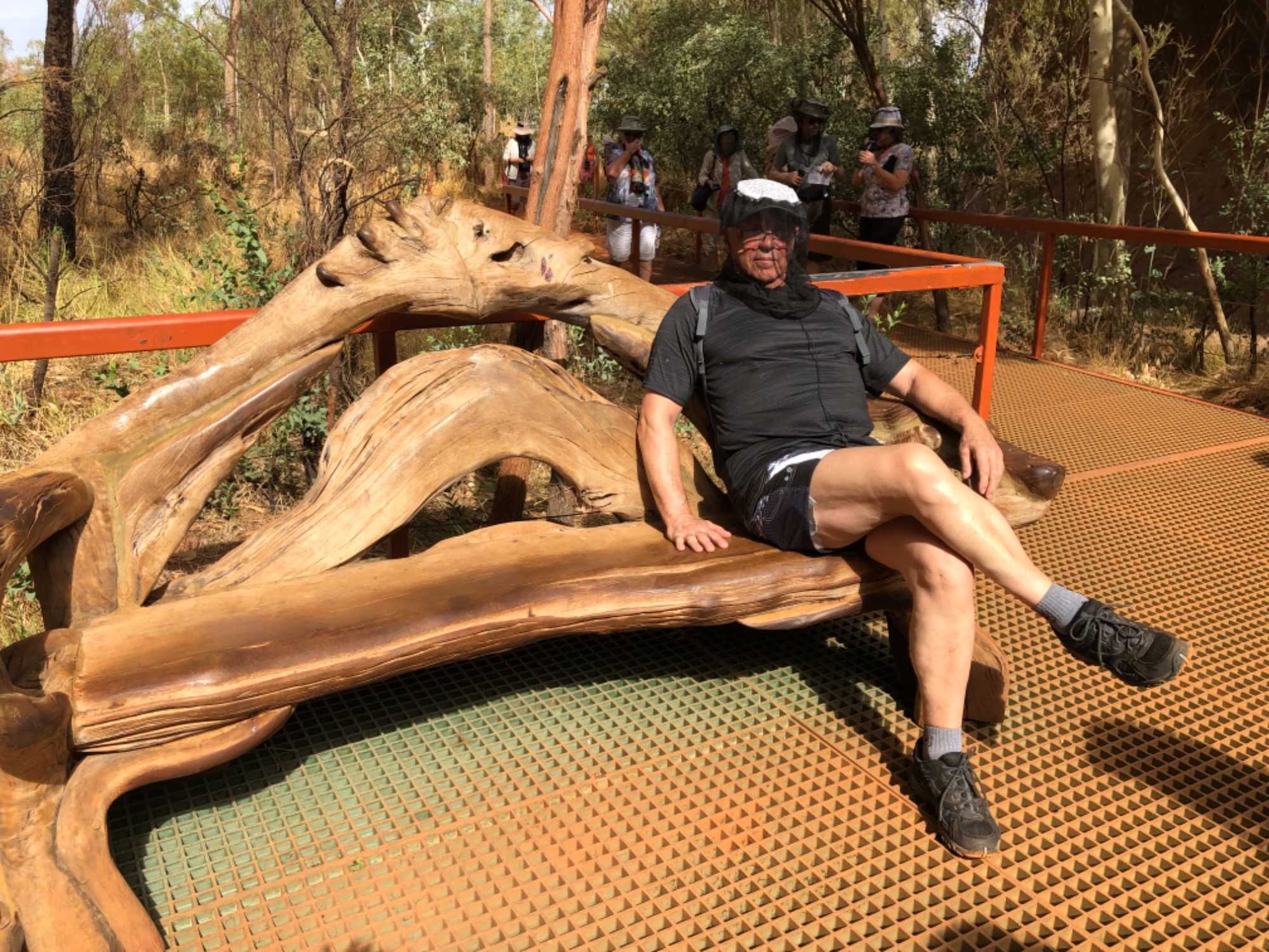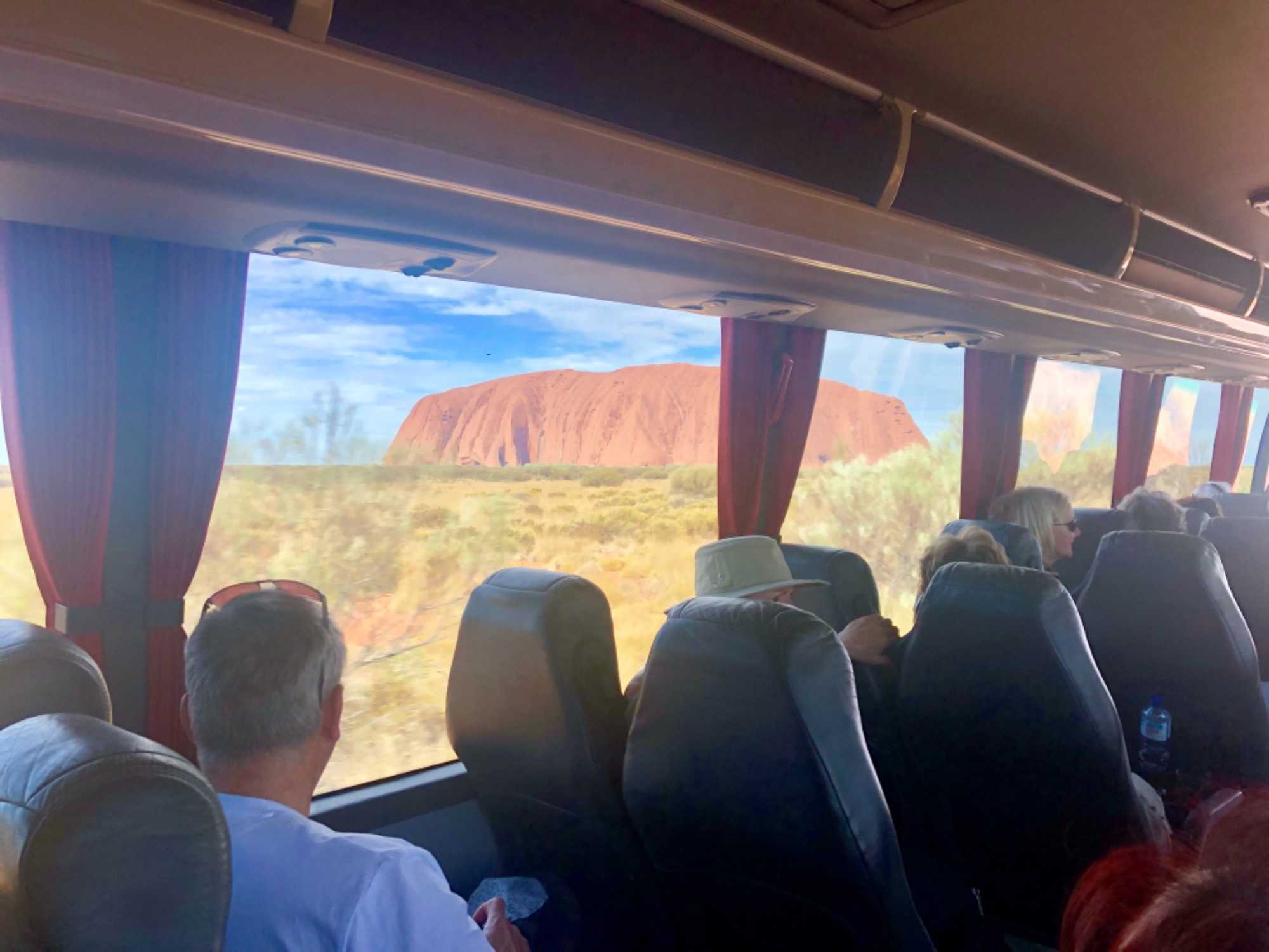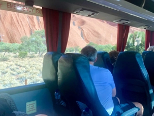 C’est très tôt ce matin que nous prenons la route. Pas si tôt que cela mais 7 h 30 c’est souvent la meilleure heure surtout lorsque l’on visite des endroits désertiques. La température est plus agréable lorsqu’il est plus tôt. D’ailleurs ce matin nous avions environ 16 degrés à notre départ mais au soleil le ressenti était plus de 22 degrés déjà. Nous aurons au moins 32 à 34 degrés dans le désert près de Ayers Rock cet après-midi. Notre journée sera marquée par de beaux paysages désertiques et une route à faire de 450 km jusqu’à notre prochaine ville où nous passerons la nuit. Nous avons un autobus des plus confortables et mes 18 voyageurs se prélassent en s’installant un passager par deux sièges. L’autobus nous permet d’apprécier la route avec tout le confort.