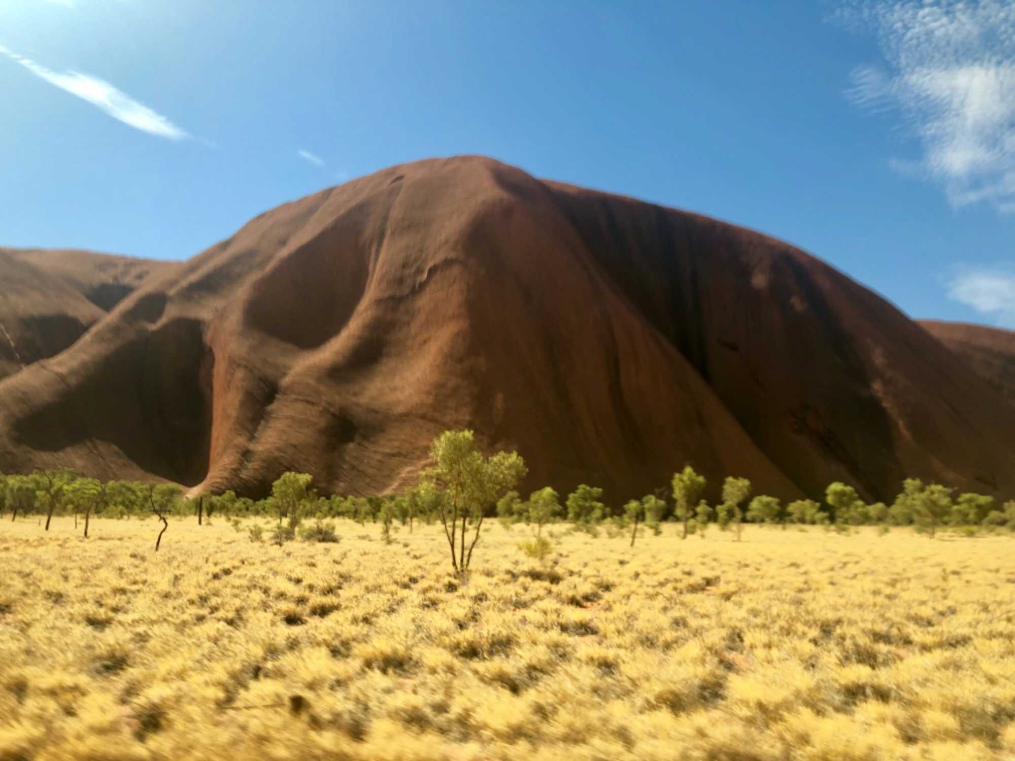 Uluru est un inselberg en grès, à 348 mètres au‐dessus de la plaine. C'est un lieu sacré pour les peuples aborigènes Pitjantjatjara et Yankunytjatjara, à la base duquel ils pratiquent parfois des rituels et réalisent des peintures rupestres d'une grande importance culturelle. Ceci combiné à ses singularités géologiques et hydrologiques, ainsi qu'aux remarquables teintes qu'il peut prendre, en particulier au coucher du soleil, en a fait un des emblèmes de l'Australie, depuis sa découverte par les Occidentaux en 1873.