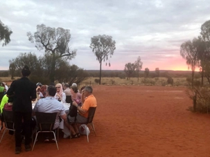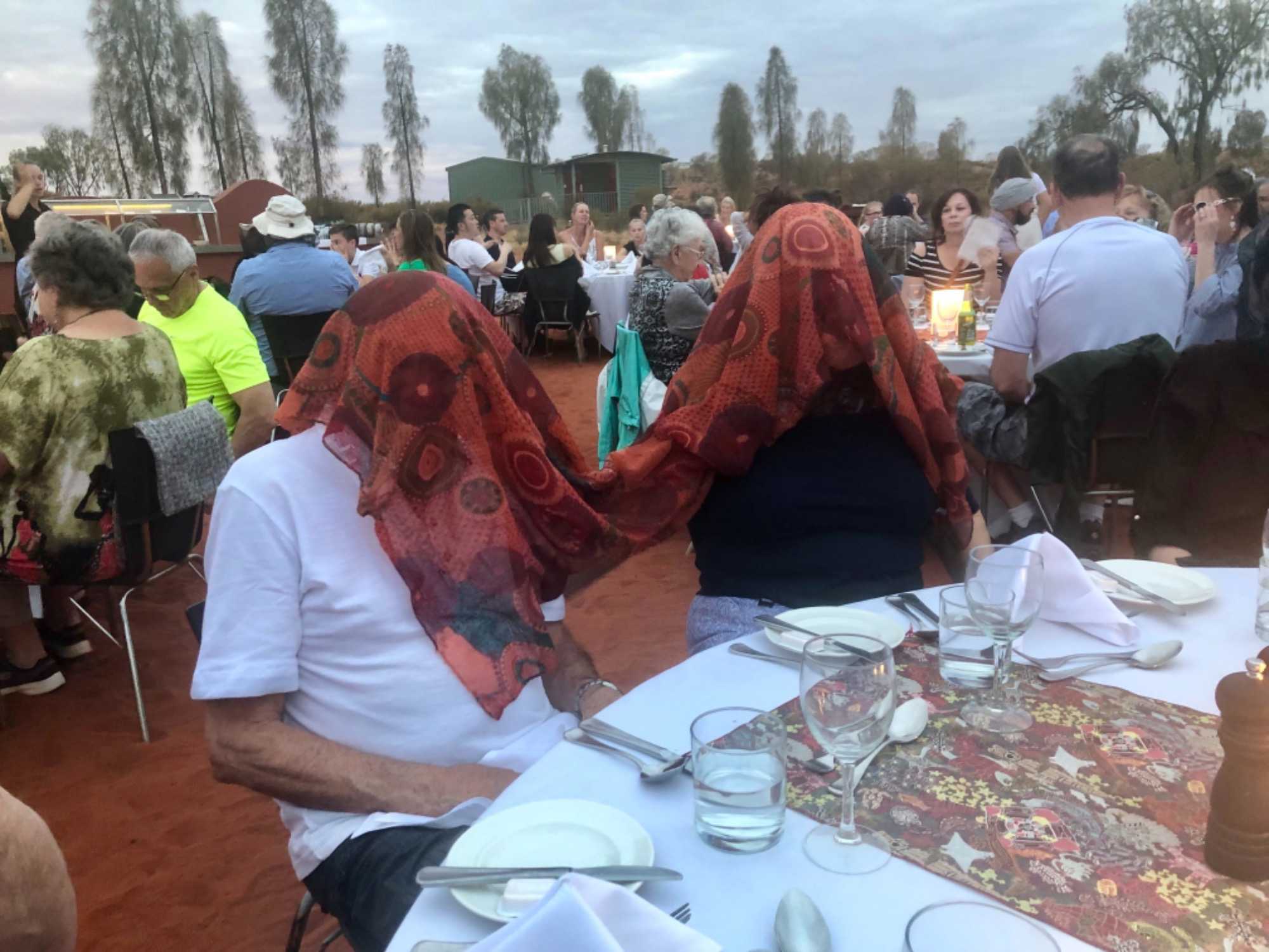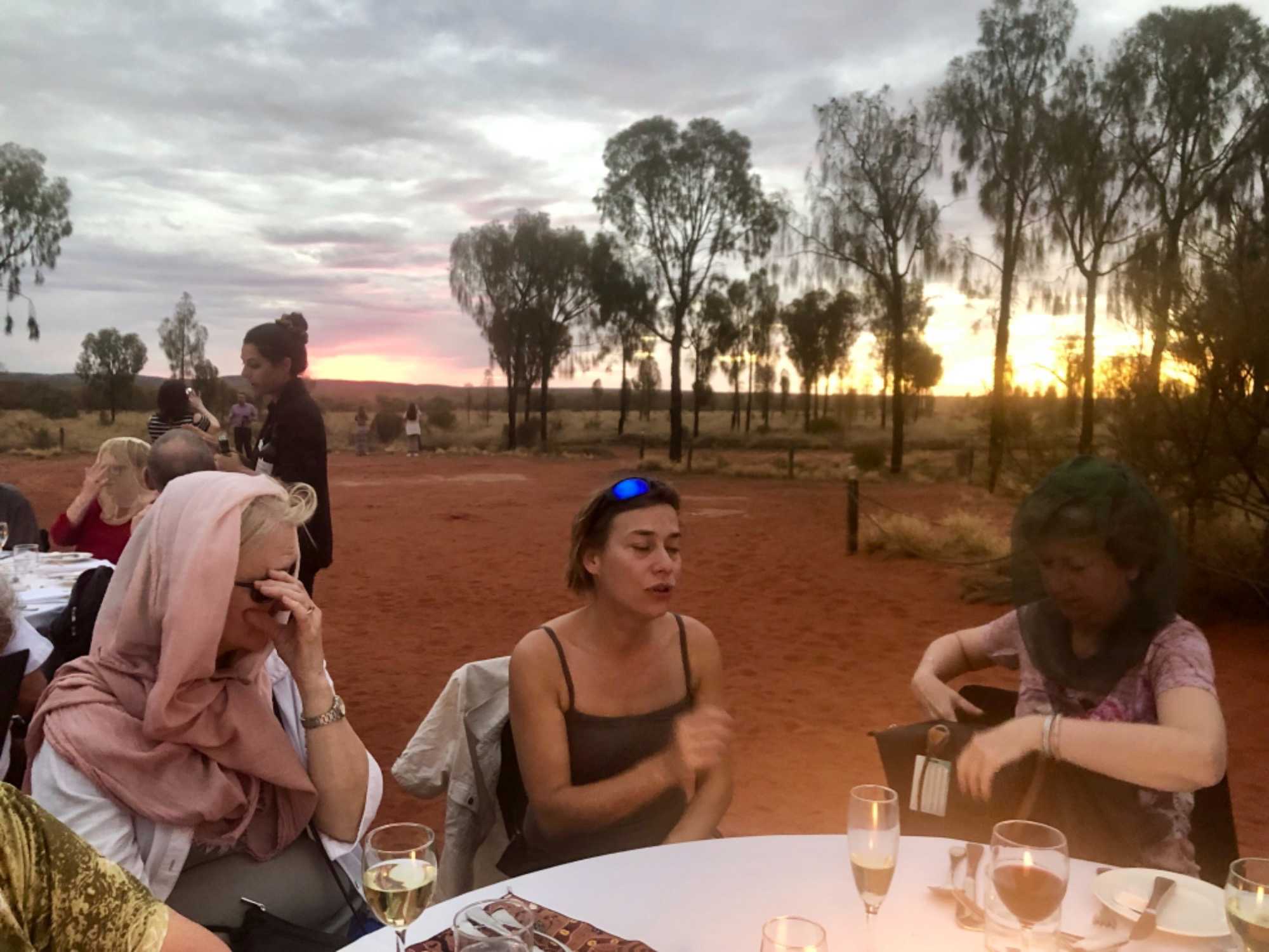 Puis, déjà le temps d’aller nous installer à l’hôtel, situé ici, dans le désert. Pour notre soirée spéciale du désert, nous sommes invités à une sortie bien particulière appelé « Sound of Silence ». Le désert, le champagne, des canapés, un souper de même qu’une courte conférence sur les étoiles. Une nuit dans le désert ne serait la même sans l’observation du magnifique coucher de soleil sur Uluru que nous partageons tous avec émotion…. Que ça fait du bien de prendre un moment pour se poser et réaliser que nous avons de la chance d’être ici, aujourd’hui, à s’émerveiller des beautés de notre belle Dame Nature. Les changements frappants de couleurs sur le monolithe qui émerge de la plaine désertique, il n’y a pas de mots pour vous décrire ce que l’on ressent… Notre cœur et notre tête sont remplies d’images sublimes! Une autre superbe journée qui se termine sous ce ciel étoilé quelle chance de découvrir ce coin du monde.