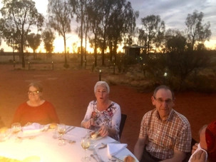 Je dois commencer ce matin par vous parler de notre exceptionnel souper d’hier soir au « Earth Sanctuary ». C’était une première pour moi, cela m’avait été proposé cette année. Les autres fois, j’avais un souper dans le « Outback » mais jamais comme celui que nous avons eu la chance d’avoir ce soir. Premièrement, c’est l’accueil de cette famille qui est venue s’installer il y a plus de 20 ans dans ce centre rouge australien, loin de leur vie dans la région du Victoria, sur le bord de l’eau. Un homme et une femme qui étaient des enseignants ainsi que leur 4 garçons ont plié bagage et ont décidé de se faire une nouvelle vie dans le désert. C’était un peu les année hippies et notre charmant hôte, Tom, l’un des 4 garçons, nous en parle avec passion. Ils ont monté une belle entreprise familiale et offre aux voyageurs la chance de vivre un peu différemment le « Outback » avec la possibilité de dormir dans un swag australien (un lit matelas, sac de couchage et compagne de danse Matilda) les photos vous montreront ce que c’est.