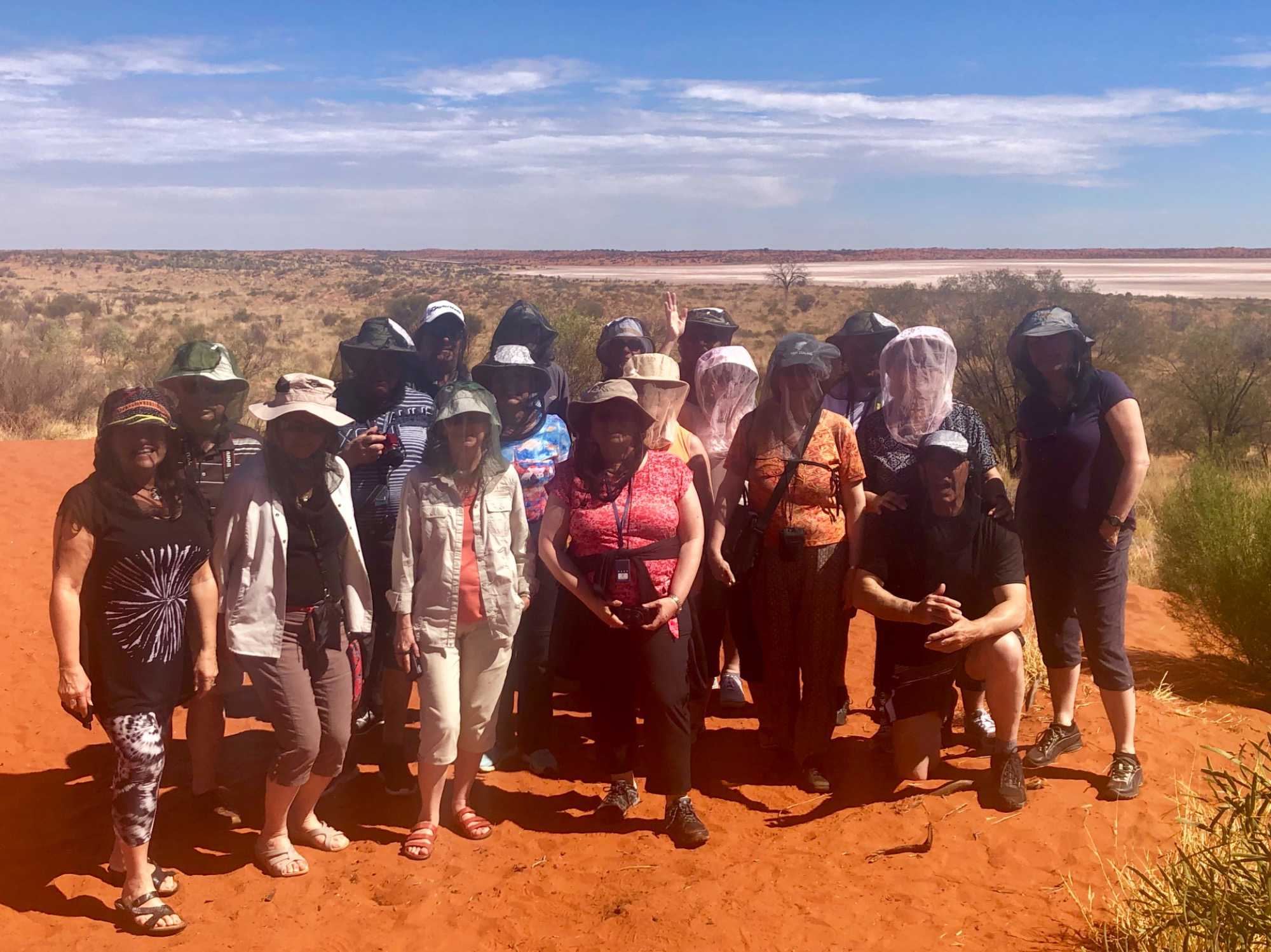 Tom nous apprend avoir passé les 10 premières années de sa vie du désert en couchant dans ce swag en admirant les étoiles. Nous avons eu notre Pierre qui a confectionné un pain dempa typique fabrication des aborigènes qui cuit 45 minutes dans le chaudron de fonte. Par la suite un succulent souper buffet du bush avec steak, saucisses et poulet, accompagnés de légumes et salades, sans oublier le bon vin australien ou la bonne bière. Le clou de la soirée fût après le souper, de suivre Tom un peu plus loin afin d’aller admirer les étoiles en sa compagnie et avec toute la passion qu’il sait si bien nous partager. Il nous explique les constellations et nous les pointe avec un laser puissant qui nous fait bien comprendre ce ciel étoilé. Quelle belle découverte et surtout de terminer avec la vue dans un télescope de dame la lune. Nous avons pu y voir les cratères de la lune, quelle belle expérience. Nous avons passé une soirée mémorable grâce à cet homme exceptionnel qui sait si bien partager sa passion et un peu de sa vie. Il est maintenant papa de 2 jeunes enfants et vit dans une maison inusitée en forme de boule que nous avons vu lors de notre cours sur les étoiles. Tout est en harmonie avec la nature et ils produisent tout ce dont ils ont besoin pour vivre. C’est tellement inspirant cette histoire que tous étaient enchantés de leur passage dans le désert de Alice Springs.