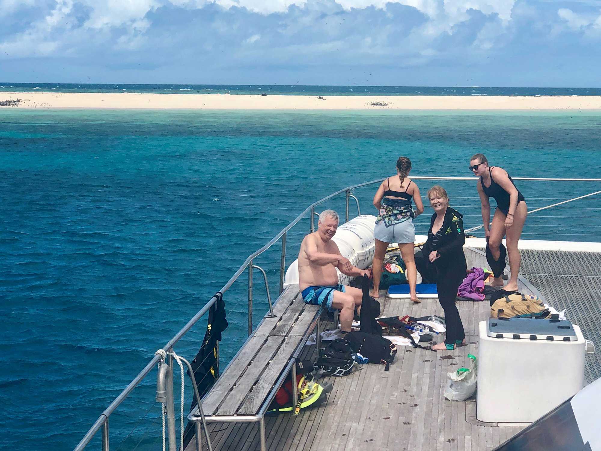 Aujourd’hui, nous découvrirons l’une des plus belles mers au monde à bord d’un agréable catamaran qui accostera près de la toute petite île Michaelmas Cay pour la journée. Il fait un temps splendide et la mer est belle. Le soleil est au rendez-vous et déjà la chaleur nous enveloppe. Pas trop chaud mais agréable de se réchauffer sous le soleil de Cairns.