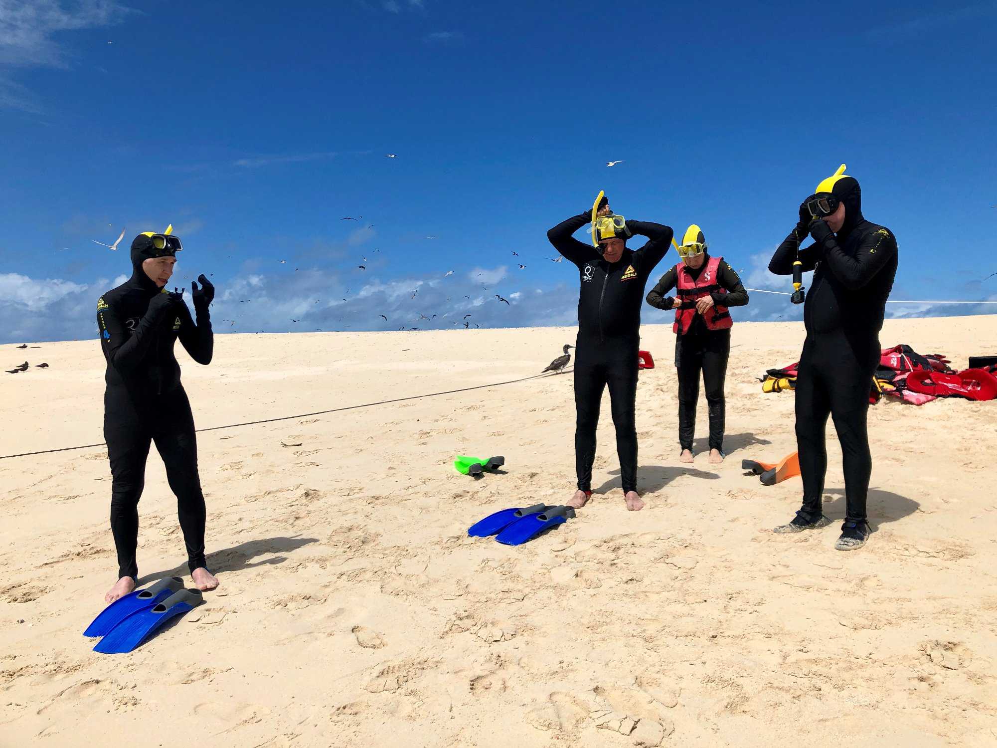 De plus cela nous protégeait du soleil durant la plongée. Nous étions tous prêts à aller vivre une belle expérience dans cette eau bien chaude. Nous avons vu de magnifiques coraux et de très jolis poissons en quantité. L’île était vraiment populaire pour les nombreux oiseaux qui sont là avec leurs nids. Nous avions un endroit à respecter afin de ne pas déranger les oiseaux.