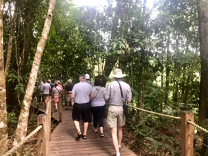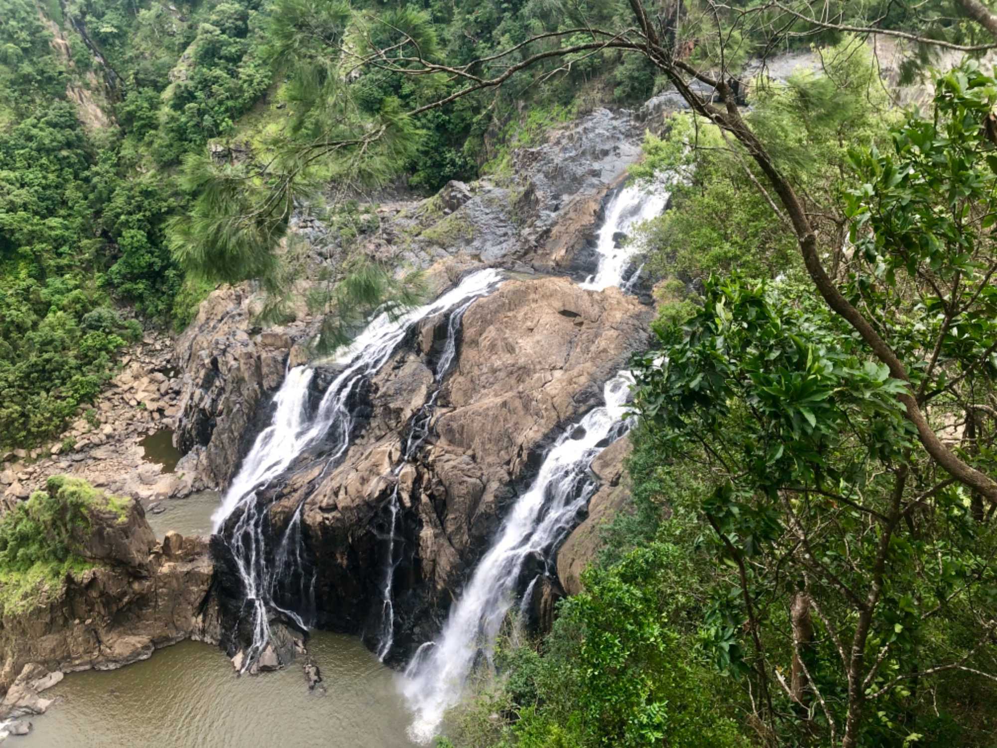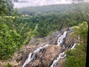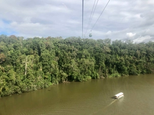 En après-midi, route vers Kuranda. Une fois sur place, nous avons droit à une balade en téléphérique au-dessus de la forêt tropicale. Très impressionnant une fois de plus! Nous avons pris ces gondoles pour 6 passagers qui traversent en 3 sections les montagnes et nous amène tout en bas. Notre premier arrêt en débarquant des gondoles fût pour voir les majestueuses chutes de Barron. Ce sont en réalité plusieurs chutes qui tombent tout en bas. La plus haute est de 260 mètres. Nous étions sur une toute nouvelle plateforme inaugurée il y a moins d’une semaine. La végétation est impressionnante et nous admirons les très hauts arbres et les fougères. Une superbe balade qui nous montre très bien cette région tropicale.