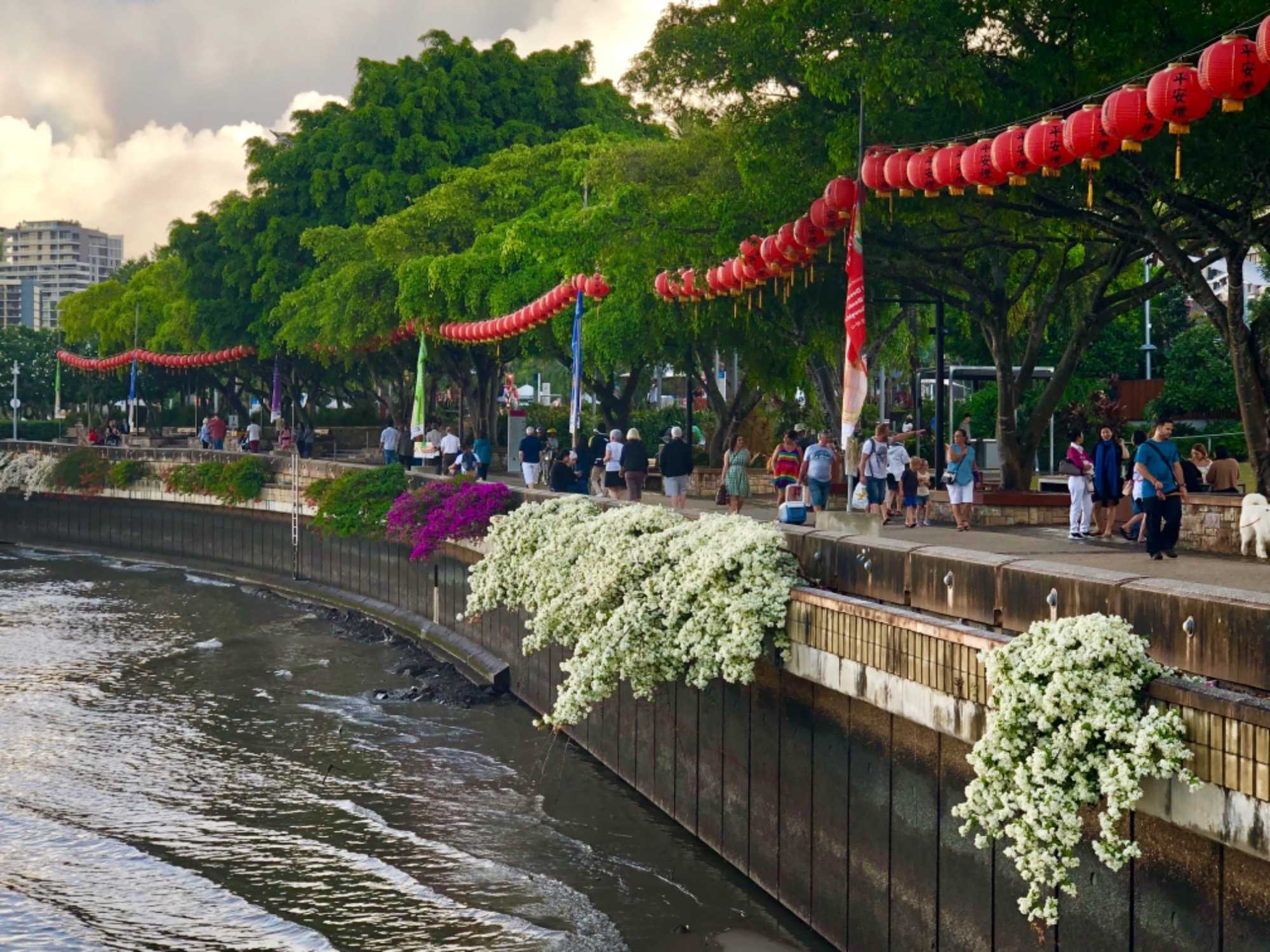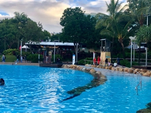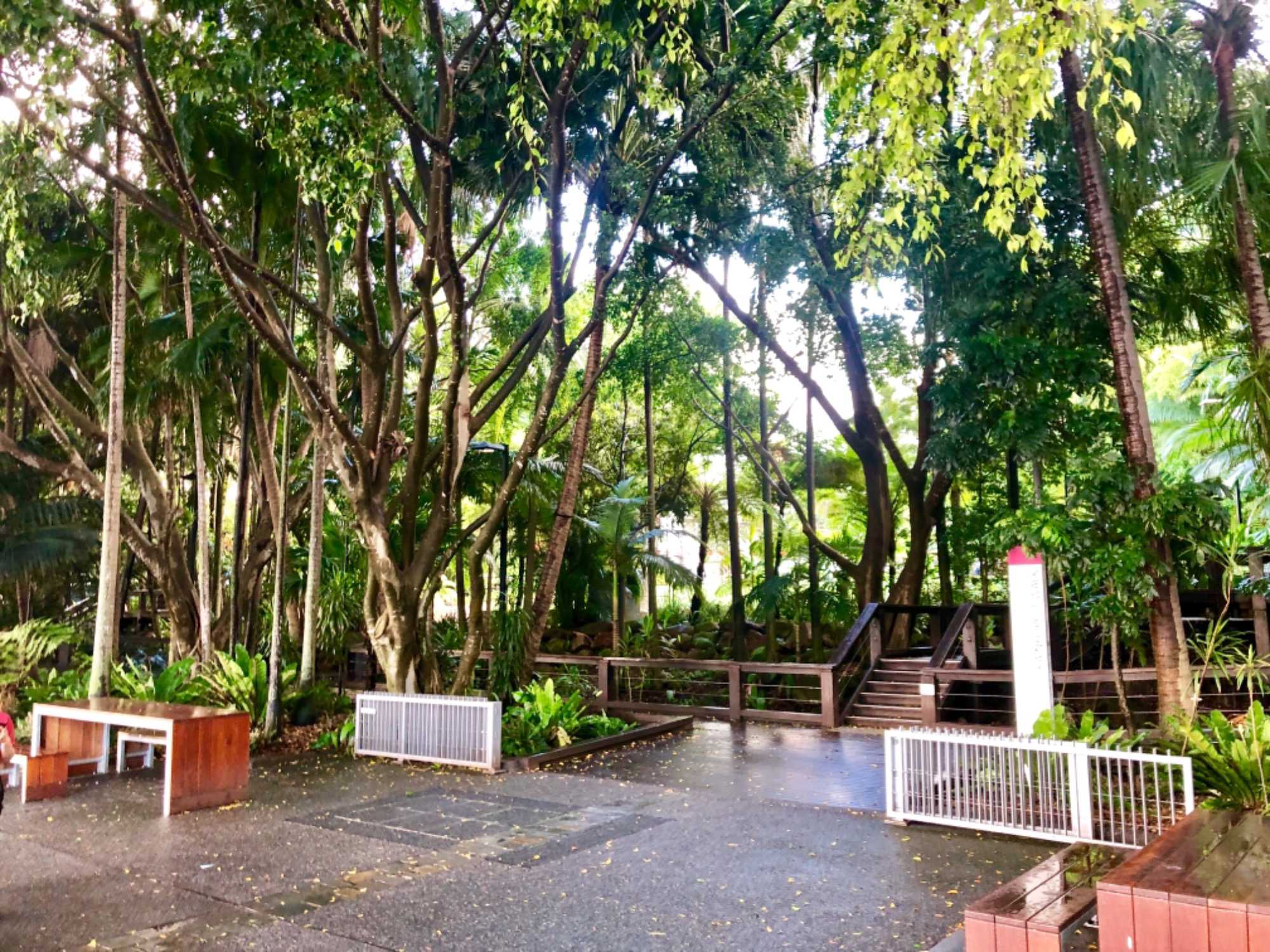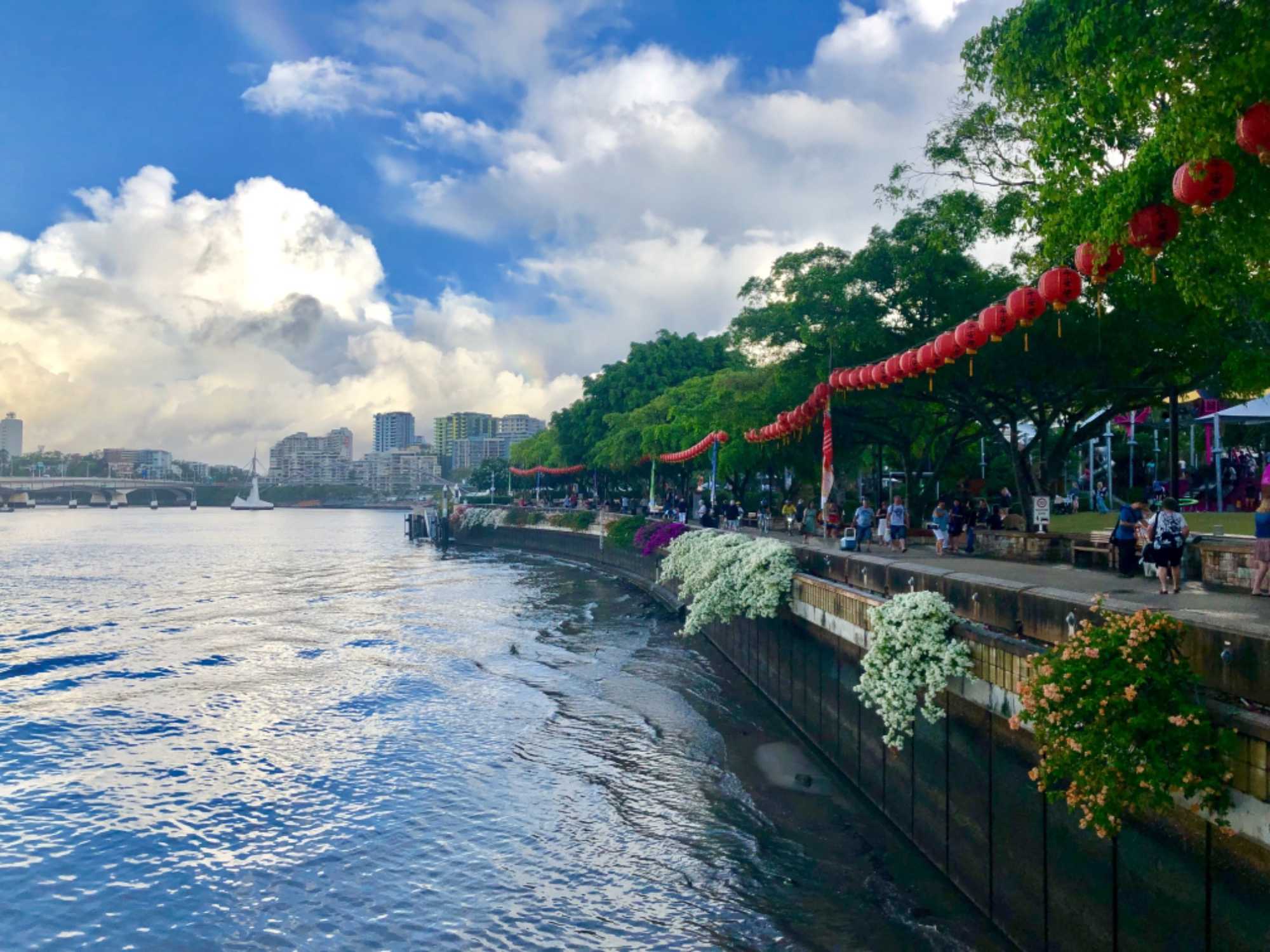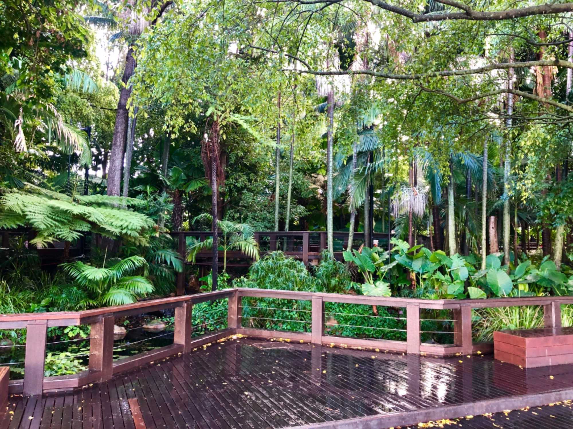 Puis nous sortons pour une magnifique promenade à South Bank Parklands (la pluie a cessé), qui avec ses 17 hectares de jardins luxuriants, se veut un lieu vraiment agréable et paisible. C’est le long de la rivière de Brisbane que nous marchons un peu. C’est tellement beau et paisible. De plus une superbe piscine est aménagée pour les enfants et les grands. Je crois que je pourrais vivre dans cette belle ville, je la trouve des plus agréables avec tous ces parcs et ses endroits tranquilles au bord de la rivière en pleine ville. Nous visitons un des sites encore existants de la dernière exposition universelle tenue à Brisbane en 1988, un très beau temple népalais qui me rappelle mon passage juste avant le tremblement de terre à Katmandou, le 25 avril 2015. Ce secteur est très animé et plusieurs enfants et adultes sont dans les piscines aménagés dans un luxuriante végétation en plein cœur de la ville.