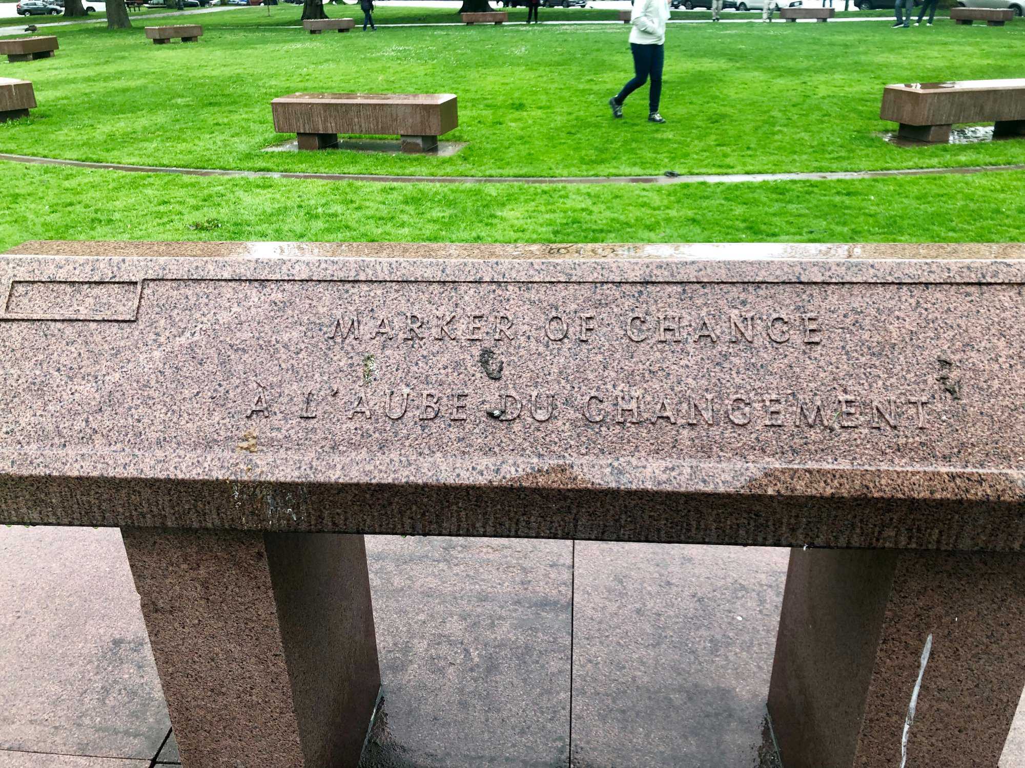 Nous avons fait un tour avec tout de même une bonne écoute de mes voyageurs malgré la pluie qui était toujours là. Nous nous sommes arrêtés à un de mes endroits mémorables de Vancouver, le parc Thornton qui est un parc commémoratif en l’honneur des femmes qui subissent de la violence. Ce parc est l’hôte de 14 bancs de marbre dédiés à chacune des jeunes femmes assassinées lors de la tuerie de la polytechnique de Montréal en décembre 1989.