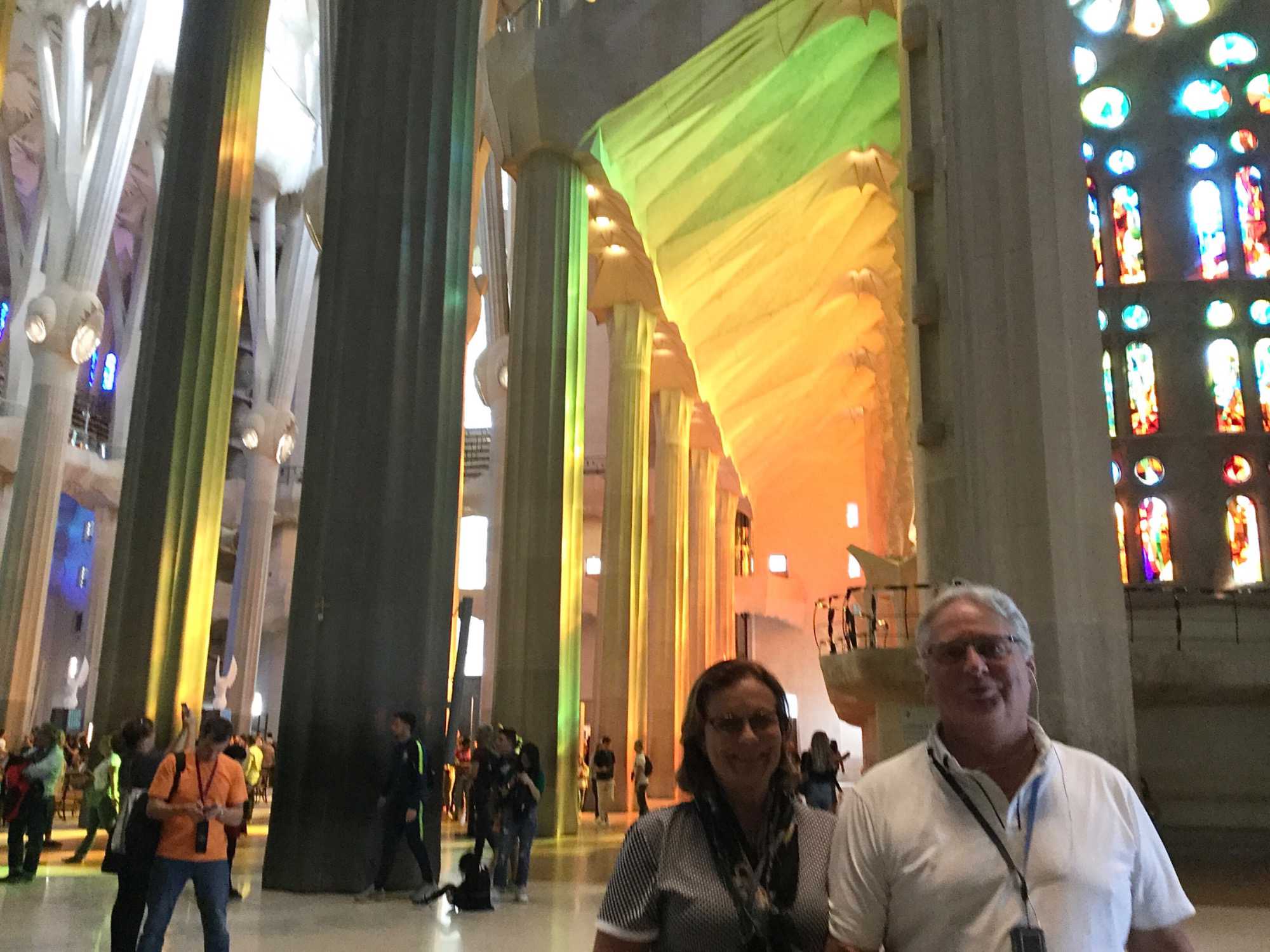 Le clou de la journée nous attend! La basilique Sagrada Familia. Oeuvre inachevée mais caractéristique du génie d’Antonio Gaudi avec ses formes inspirées de la nature et ses mosaïques de céramique. Précurseur de l’art moderniste, Gaudí né en 1852 eut l’idée de cette construction en 1882 dans la maison-musée située au Parc Güell où il vécut de 1906 à 1926. Nous aurons le plaisir de nous promener dans ce parc plus tard dans la journée. Les sept portes en bronze de la basilique réalisées par Josep Maria Subirachs donnent accès au temple à travers la façade principale. La phrase « Seigneur, donne-nous notre pain quotidien » est inscrite en cinquante langues. Nous pénétrons dans 4500 mètres carrés de pure merveille! La grande forêt pensée par Gaudí s’élève grâce aux 36 colonnes hélicoïdales à double hélices arborescentes sur un sol en forme de croix latine qui laisse entrer la lumière naturelle. La splendeur de l’ensemble nous laisse tous pantois. La fin de 142 ans de travaux est prévue pour 2026. BCent ans ce seront alors écoulés depuis la mort tragique dans l’anonymat de Gaudí heurté par un tramway en 1926.