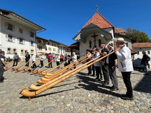 On le retrouve surtout en Suisse, mais aussi en Autriche, en Allemagne, et aussi en Pologne il se nomme cor des Alpes. Dès sa création, par la longueur de on tube supérieur à celle des cors métalliques de l’époque, le cor des Alpes était un instrument avancé musicalement parlant.